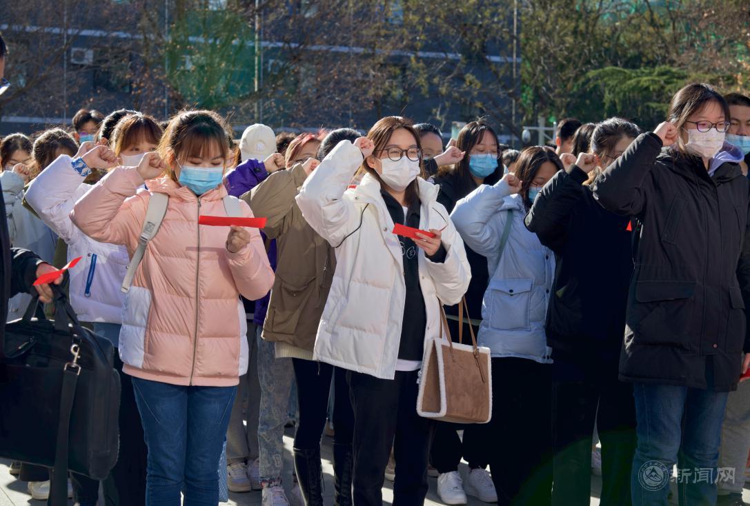 百余名青年学生在领誓人的带领下,进行宪法宣誓,感受宪法权威,向党和人民做出庄严承诺。