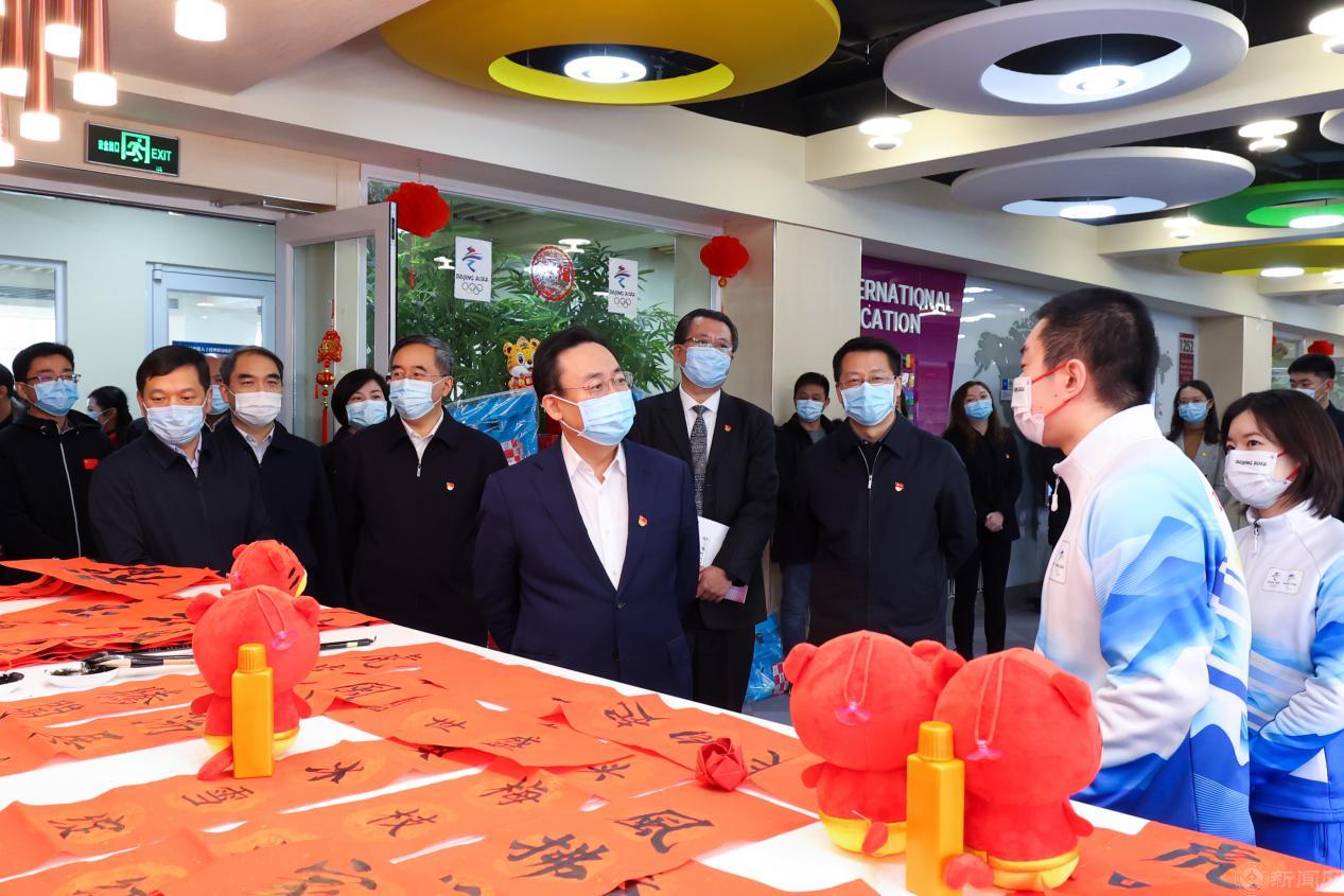 冰雪迎冬奥,寅虎贺新春。1月30日上午,在农历春节即将来临、2022年冬奥开幕倒计时5天之际,北京市委常委、教育工委书记夏林茂来到Beat365慰问冬奥志愿者,检查指导学校疫情防控、安全稳定和假期生活服务保障工作。市委教育工委常务副书记郑吉春,团市委书记李军会,市委教育工委副书记李军锋,冬奥组委志愿者部副部长张秀峰,团市委副书记钟棉棉,校党委书记缪劲翔,校党委副书记、校长张立峰陪同慰问检查。
