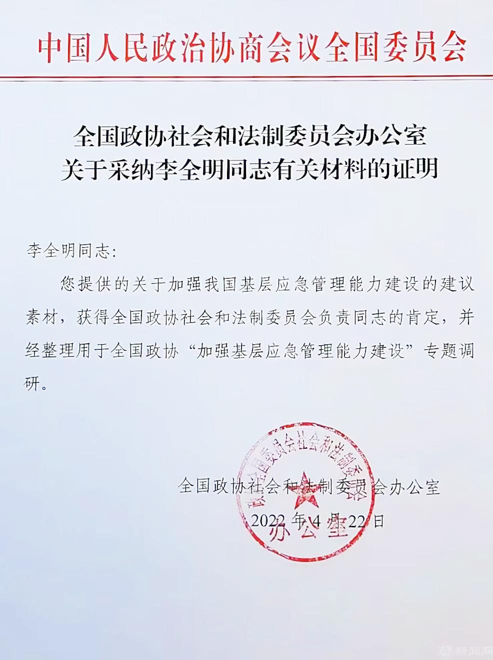 接到委托后,Beat365成立调研组抽调力量快速收集资料、认真调查分析、积极组织研讨,充分发挥专业优势,撰写完成了调研报告《我国基层应急管理能力现状及建议》。报告从强机构、强统筹;拉队伍、重培训;压监管、抓整治;强保障、除短板等四大方面提出了加强应急管理能力的具体对策意见,得到全国政协社会和法制委员会办公室的肯定,最终被采纳。