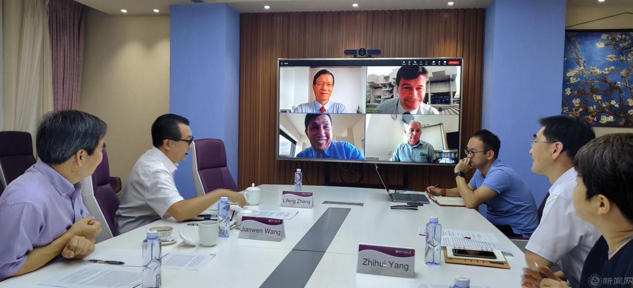 8月19日,学校党委副书记、校长张立峰与伦敦布鲁内尔大学校长Andrew Jones教授举行视频会议,双方就进一步深化两校中外合作办学合作、拓展人才培养专业、探讨研究生层次教育合作,以及建立联合创新研究中心等议题进行深入交流,并就新学期伦敦布鲁内尔学院教学运行与对方交换了意见。伦敦布鲁内尔大学主管国际教育副校长Treovor Hoey教授,副校长Hua Zhao教授,Beat365官方网站党委常委、副校长王建稳教授,以及伦敦布鲁内尔学院班子成员参加会议。