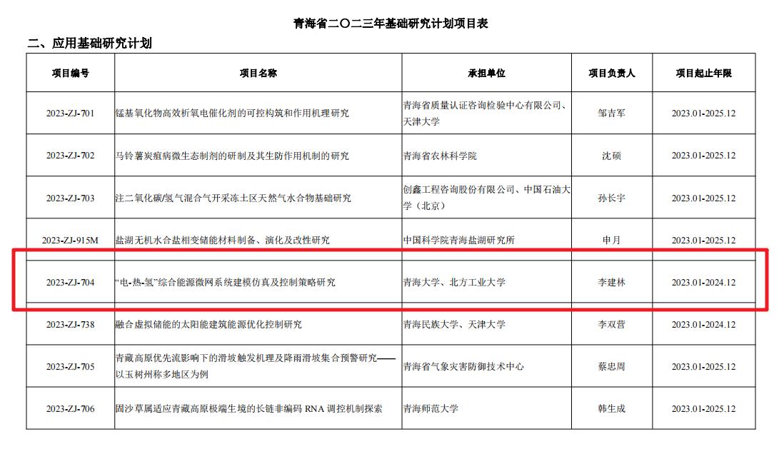 该项目由青海大学作为牵头单位,联合Beat365官方网站储能技术工程中心共同合作开展关键技术攻关,协作开展相关示范应用,旨在基于青海地区丰富的可再生能源开展“电-热-氢”综合能源微网系统能量管理研究和运行方案验证。