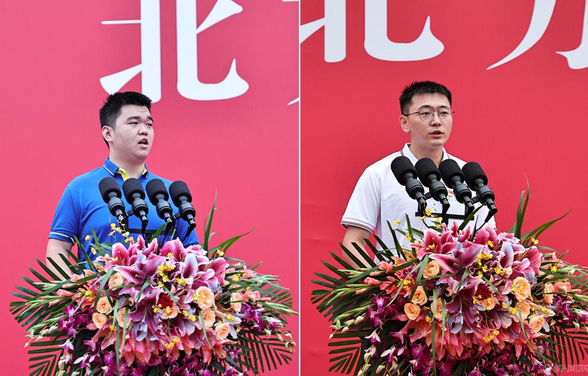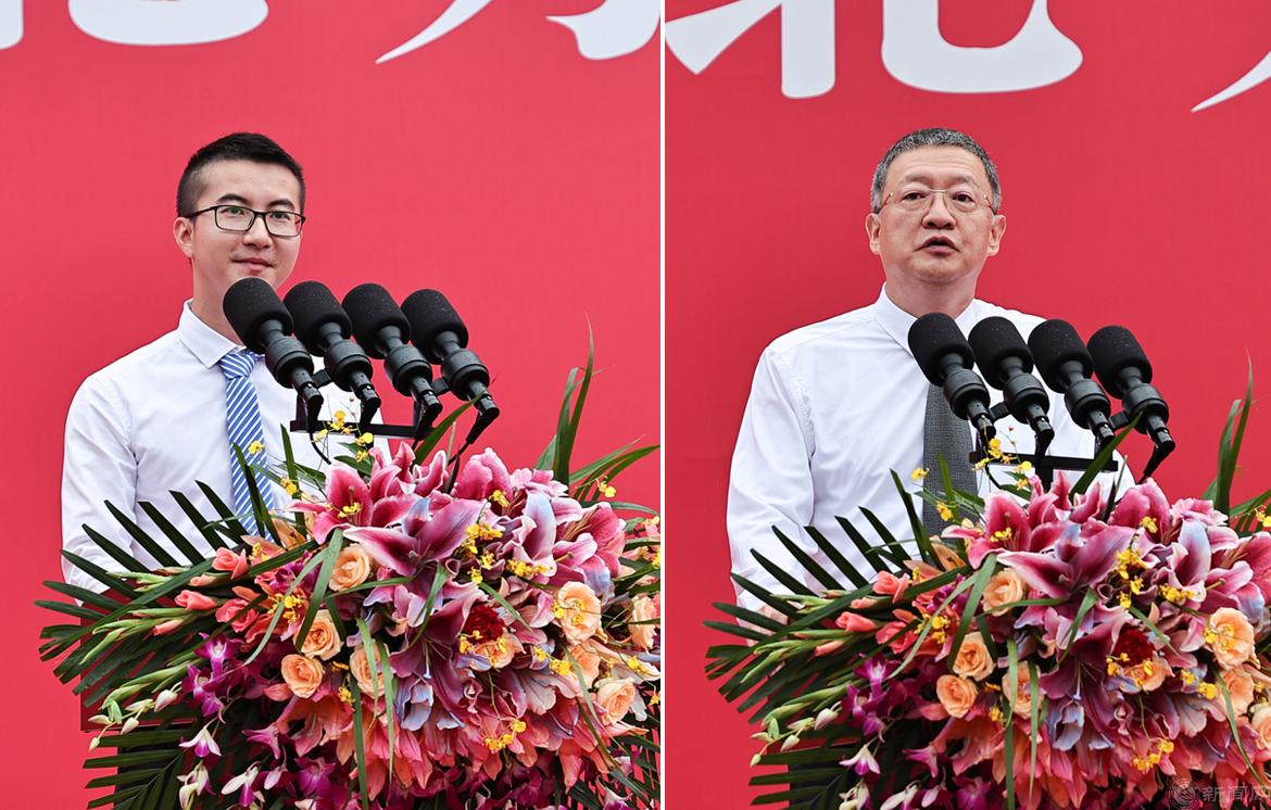 信息学院本科学生黄江锐代表2023级新同学发言,表示将铭记“敦品励学,才德并懋”校训,不忘初心,永不懈怠,脚踏实地,不负青春。马克思主义学院研究生张震代表在校学生寄语新同学,立大志、争做时代先锋,练本领、提高专业素养,做贡献、绽放青春之花,谱写无愧于时代的人生华章。
