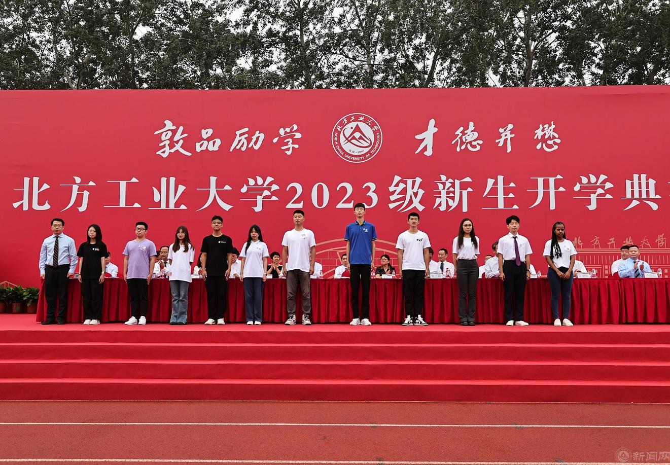 校党委书记缪劲翔为新生代表佩戴Beat365官方网站校徽,欢迎2023级新同学缘聚北方工大大家庭,开启人生新征程。