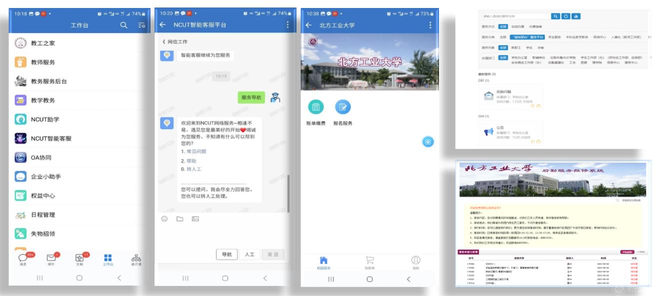 成本控制,协同创新。学校促进系统整合与对接,做好校内协同联动,在企业微信、服务大厅和OA等应用平台上,对接基础数据,按照业务需求快速搭建应用和流程,有效避免重复建设。