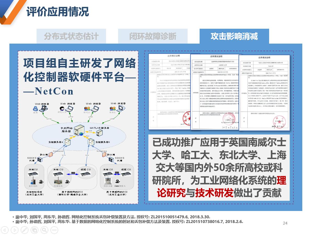 “工业网络化系统的状态估计、故障诊断及安全防护”项目,针对工业网络化环境中的复杂干扰、非理想传输、隐蔽攻击等特征,以控制理论和信息论为基础,构建了保障系统性能的估计、诊断及防护方法,形成了工业网络化系统的分布式状态估计理论、工业网络化闭环系统的故障诊断理论以及工业网络化系统的安全防护理论,突破了现有工业安全运行理论的局限性,推动了控制学科的发展。