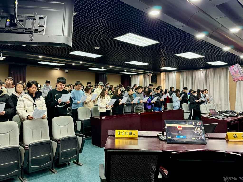 文法学院还发挥专业优势,组织百余名学生线上线下开展宪法学习活动。在瀚学楼710学术中心及610模拟法庭,两个会场同步组织学生集中线上收看第十个国家宪法日教育系统“宪法晨读”活动,并分别在线下组织开展宪法诵读。