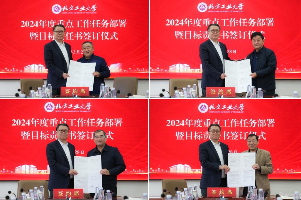党委副书记、校长张立峰分别与信息学院、机材学院、建艺学院、土木学院、经管学院、文法学院、理学院等7个学院院长,以及人事处(教师工作部)、教务处、科研院(科技成果转化中心)、研究生院、学工部等5个职能部门负责人签订了工作目标责任书。