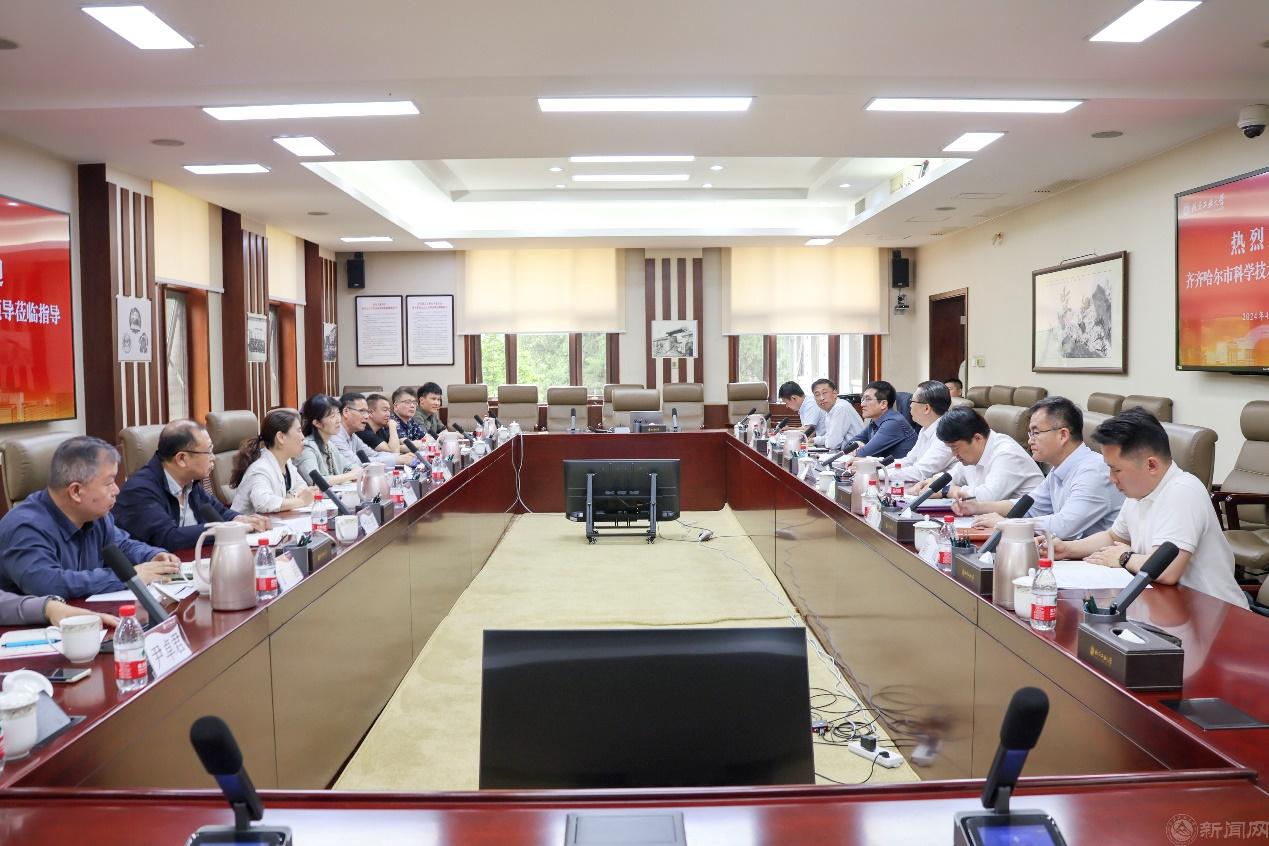 4月25日,齐齐哈尔市科学技术局局长黄静一行来校考察调研,就深化务实校地合作、推动共同发展进行交流研讨。党委副书记、校长张立峰出席座谈会,党委常委、副校长陈群参加座谈会并一同现场调研。座谈会由陈群主持。