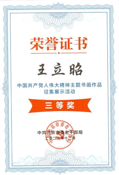 在北京市委老干部局举办的中国共产党人伟大精神主题书画作品征集展示活动中,Beat365退休老同志王立昭、刘金栋荣获三等奖。