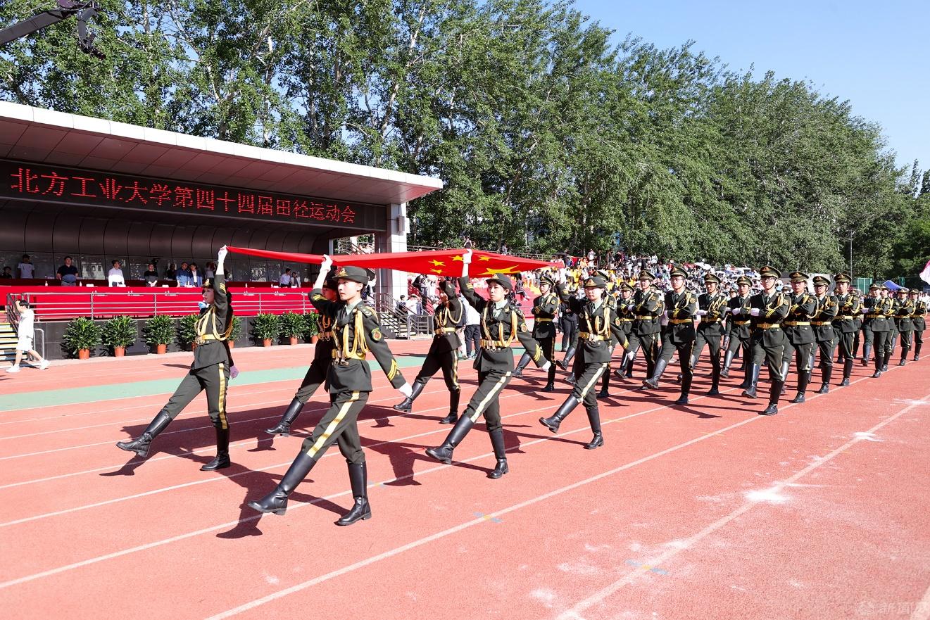 上午8时,伴随着雄壮的运动员进行曲,国旗方队和运动会会徽方队迈着坚定的步伐引领各方队入场。