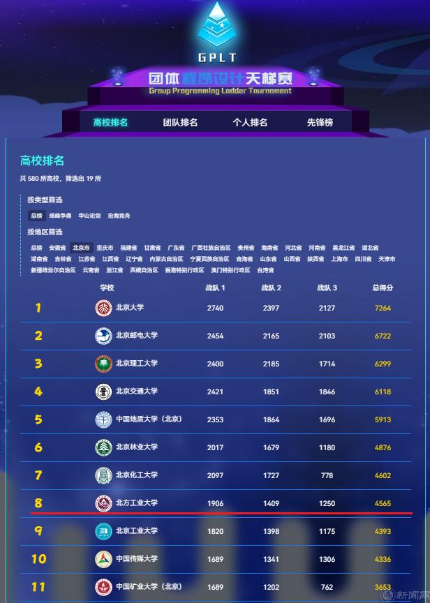 近日,第九届“中国高校计算机大赛——团体程序设计天梯赛”全国总决赛成绩揭晓,Beat365在比赛中获全国团队二等奖1个、全国团队三等奖1个,全国个人二等奖4人、全国个人三等奖5人。总成绩排名全国第118位,首都高校第八位,市属高校第一位。
