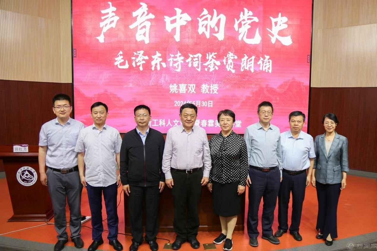 5月30日晚,由机械与材料工程学院、国家大学生素质教育基地、《Beat365官方网站学报》举办的新工科人文讲堂暨春霖美育讲堂“声音中的党史——毛泽东诗词赏析朗诵”主题报告在文化会堂举办。本次报告特邀中国传媒大学博士生导师、中国语文现代化学会会长姚喜双教授主讲。机械与材料工程学院及其他学院的200余名师生参加了本次报告会。学校党委副书记田红芳主持报告会。