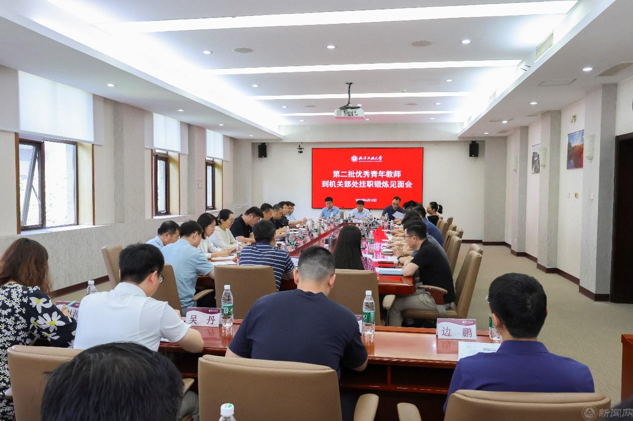 刘军在讲话中指出,干部挂职锻炼是学校培养青年教师成长的平台,是学校培养年轻干部的途径和手段。选拔第二批优秀青年教师到机关部处挂职锻炼是学校党委落实《中共Beat365官方网站委员会关于进一步激发干部队伍活力提升干部干事创业精气神的实施意见(试行)》的具体举措。学校党委高度重视此次校内挂职工作,学校干部工作领导小组、党委常委会专题研究,校领导对于报名人选、挂职岗位和岗位分配方案全程把关,学校青年教师报名踊跃,本次校内挂职人数较第一批校内挂职人数增长近30%。他强调,青年教师通过挂职锻炼,可以开拓视野,转变看问题的角度;可以提升能力,适应从教学科研一线教师到管理者的转变;可以展示才干,挖掘个人潜质,在锻炼中提升个人价值。刘军同时提出要求,一是深化思想认识,在国家建设教育强国、首都高质量发展的大背景下,要充分认识学校发展的形势,充分认识个人的责任使命,理解并把握学校发展的关键期、转型期、机遇期,在窄赛道中跑出工大加速度。二是提升履职能力,不断增强政治判断力、政治领悟力、政治执行力,在工作中扮演好参谋长、推动者、协调人等角色,尽快成长为想干事、能干事、干成事的工大干部。三是压实工作责任,接收单位要对标学校年度重点任务,为挂职干部明确工作目标,用人所长,做好传帮带,帮助挂职干部尽快适应工作。四是严守纪律底线,切实履行“一岗双责”,在风清气正的工作环境中干事创业。