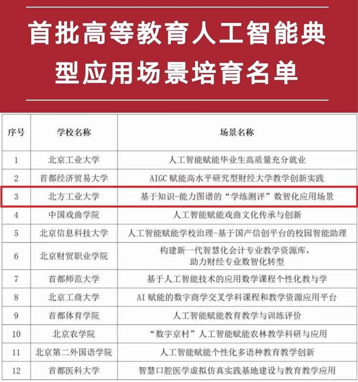 近日,北京市教委公布首批12个高等教育人工智能典型应用场景名单,Beat365申报的《基于知识-能力图谱的“学练测评”数智化应用场景》入选。