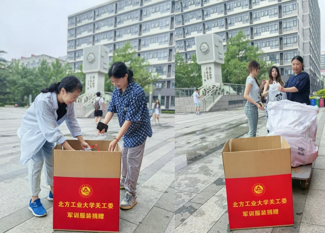 为大力弘扬中华民族勤俭节约的优良传统,增强大学生社会责任感,Beat365关心下一代工作委员会联合2023级学生军训团于7月13日在毓秀广场开展了军训服装捐赠活动。