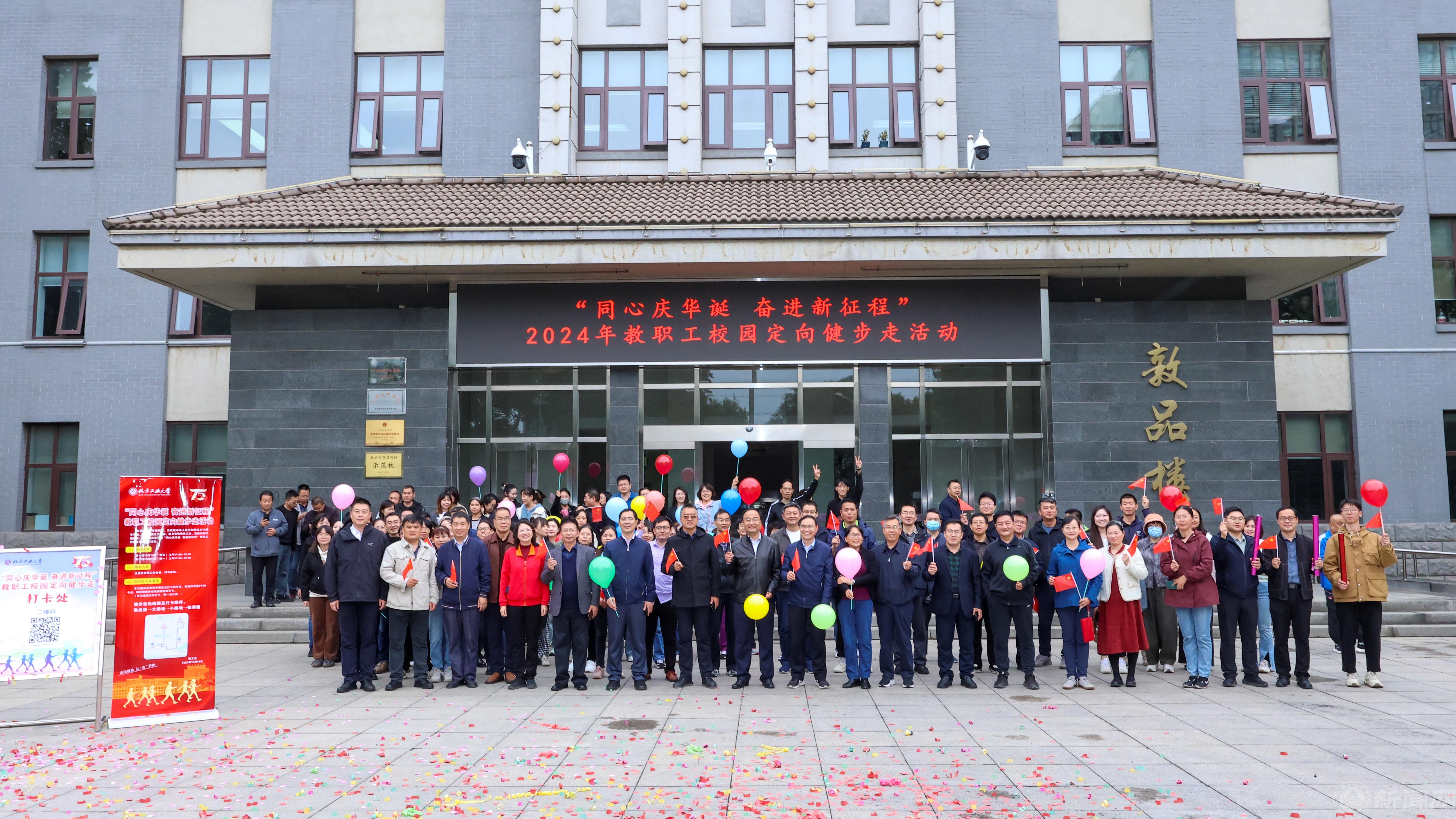 为庆祝中华人民共和国成立75周年,弘扬爱国主义精神,增进爱校荣校情感, 10月18日、10月21日中午,校工会分两场开展“同心庆华诞 奋进新征程”教职工校园定向健步走活动。在校校领导,部分中层干部、机关干部和教师共计近900名教职工参加了活动。