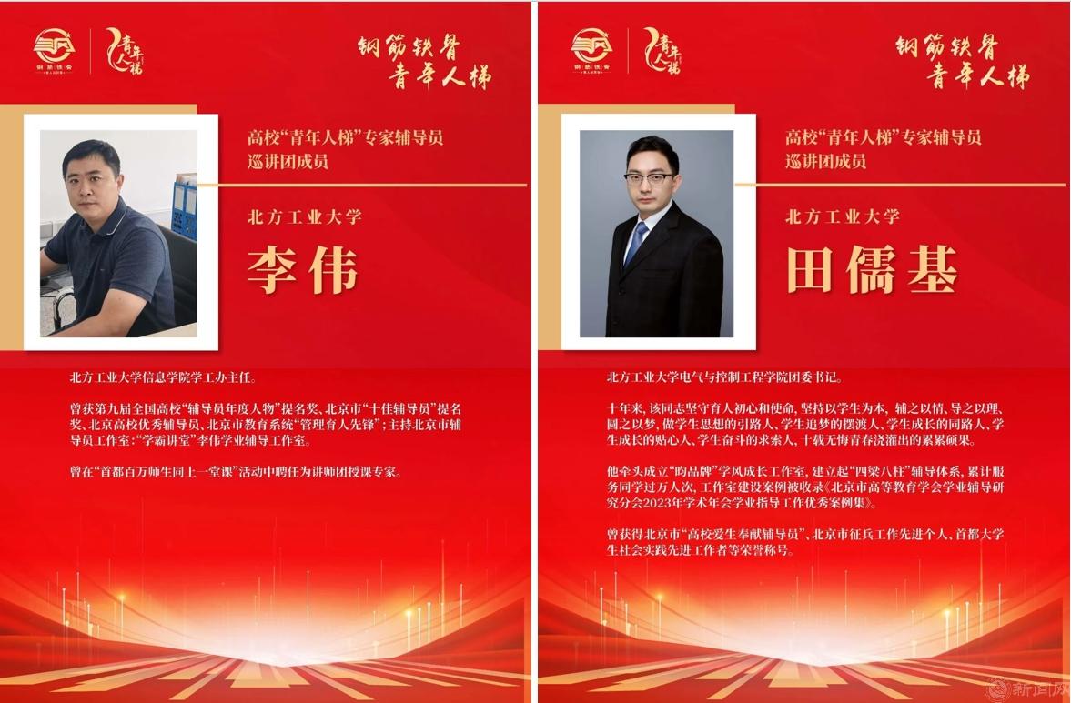 高校“青年人梯”专家辅导员巡讲团是在教育部、北京市委教育工委的指导下,依托新时代高校“钢筋铁骨”育人共同体,进一步强化辅导员队伍建设、推进思想政治教育改革创新的重要举措。巡讲团成员来自19所高校的34位优秀辅导员,其中包括全国“最美高校辅导员”、全国高校辅导员年度人物等国家级荣誉获得者。