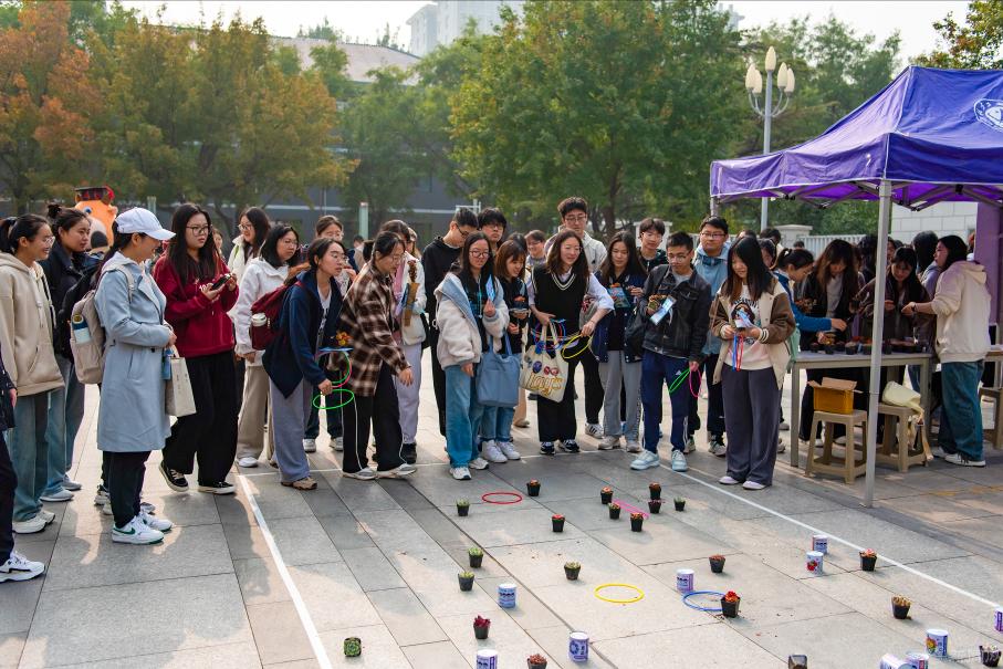 为进一步落实《关于优化提升学生心理健康工作的行动方案》要求,全方位促进学生心理健康成长,学校于10月25日在毓秀园中开展“快乐同行 相‘愈’集市”——心灵集市游园活动。校党委副书记史贞军现场指导,1000余名学生参加活动。