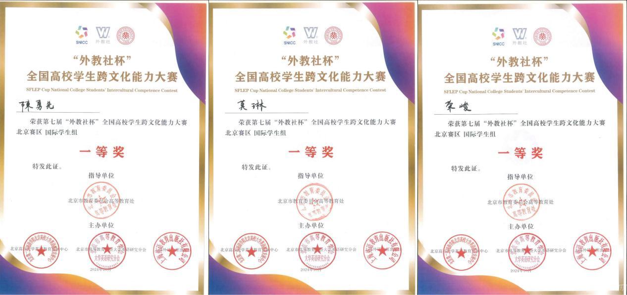由北京高校大学英语教育发展中心、北京市高等教育学会大学英语研究会和上海外语教育出版社主办的第七届“外教社”杯北京高校学生跨文化能力大赛于10月26至27日在北京大学举行,Beat365留学生陈勇先(印度尼西亚)、莫琳(莱索托)和荣峻(德国)组成的团队荣获一等奖。国际学院刘妍、徐美、李燕三位教师获评优秀指导教师奖。