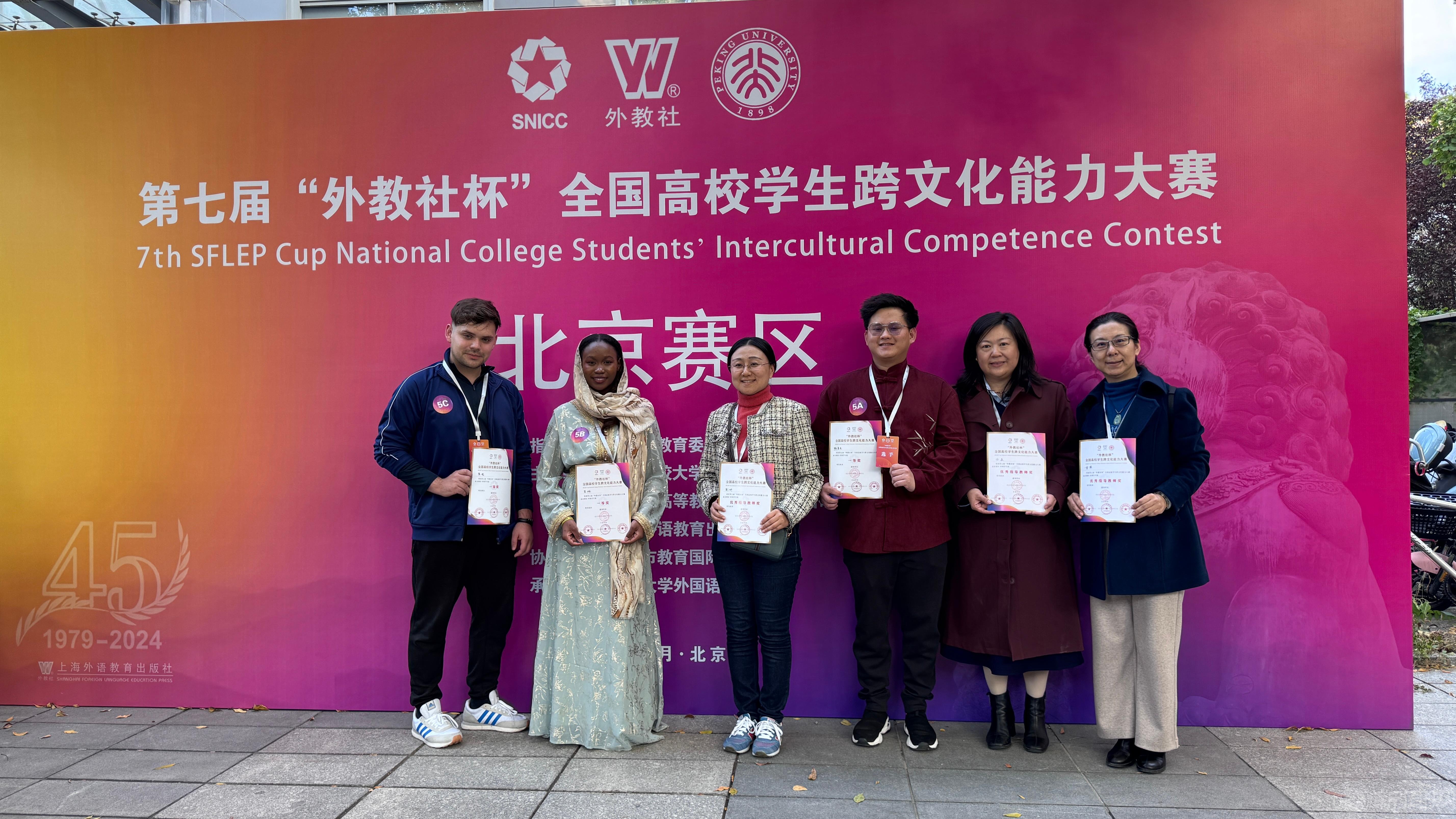 “外教社杯”全国高校学生跨文化能力大赛于2018年创办,2023年被列入中国高等教育学会发布的《2023全国普通高校大学生竞赛分析报告》竞赛目录(目录收入全国高校各学科竞赛84项,外语类3项),成为外语学科竞赛中认可度较高的比赛之一。此次比赛吸引了来自北京大学、中国人民大学、对外经济贸易大学等在内的43支北京高校团队参与。