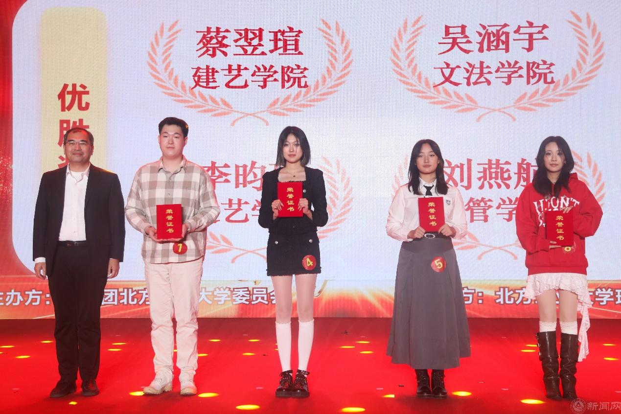 经过激烈比拼,最终李立玖,杜景春、王依涵分别获得了此次比赛的冠亚季军;赵征获得了最佳潜力奖,刘燕航获得了最具人气奖;蔡翌瑄、吴涵宇、李昀珂、刘燕航获得了优胜奖;校党委副书记史贞军、校团委书记杨超、理学院院长李沍岸为获奖选手颁奖。