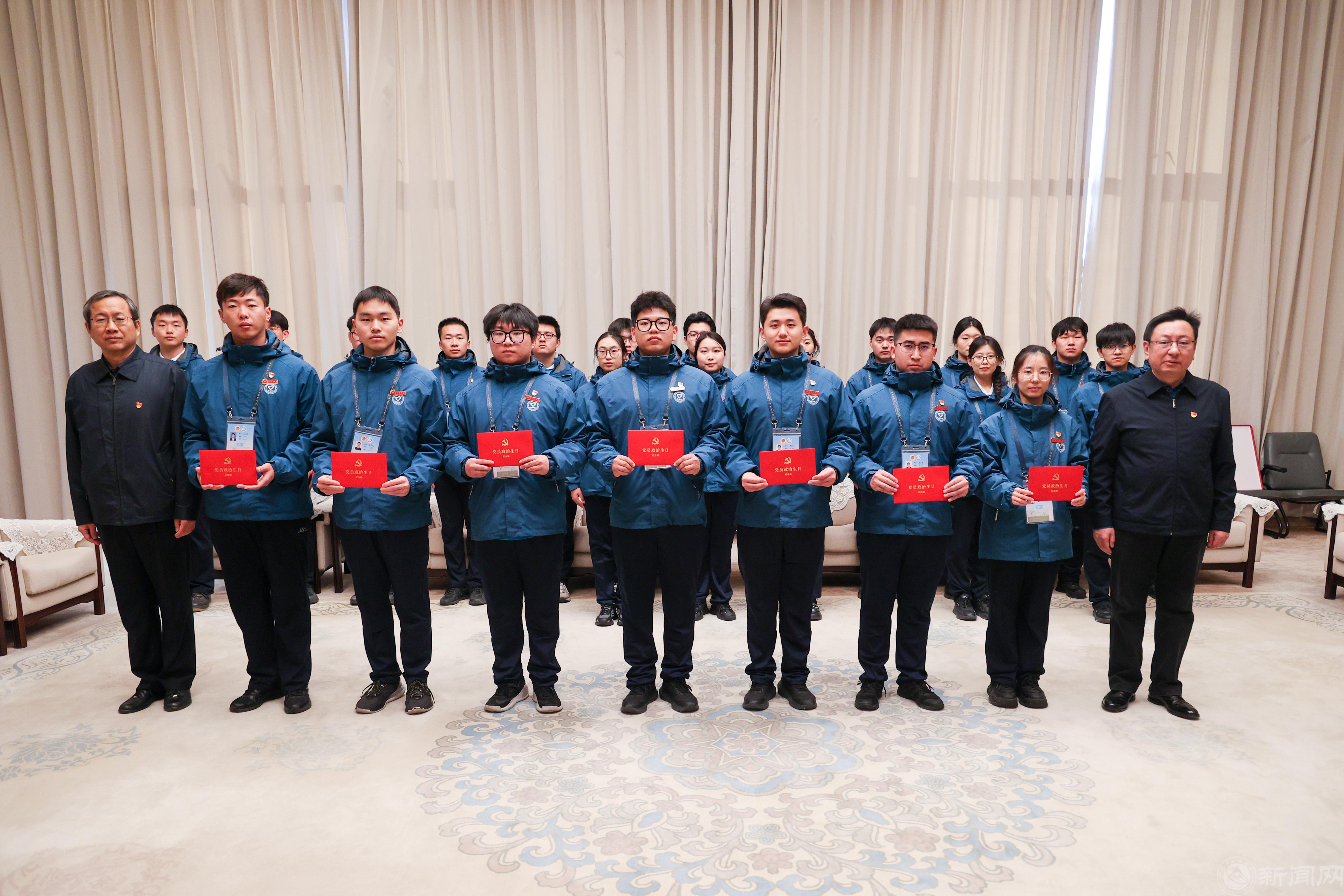 在东会议大厅,组织志愿者党员集体过政治生日、重温入党誓词。李建忠向Beat365团委颁发“2023毛主席纪念堂志愿服务优秀组织单位”奖牌。
