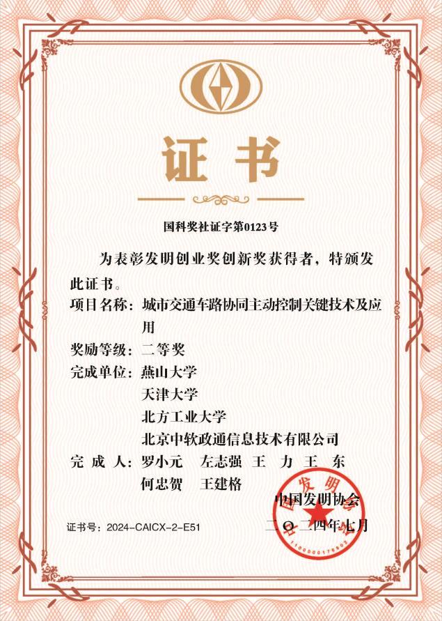 “城市交通车路协同主动控制关键技术及应用”提出了车路协同环境下交通信号主动控制方法,突破了网联自动驾驶车辆轨迹跟踪及协同编队控制关键技术,研发了主动式交通信号控制-车路协同系统,构建了交通管理大数据分析及车路协同管理服务平台,项目成果在北京、山东等地进行了应用,显著提升了交通运行效率,提升了交管系统智能化服务水平。