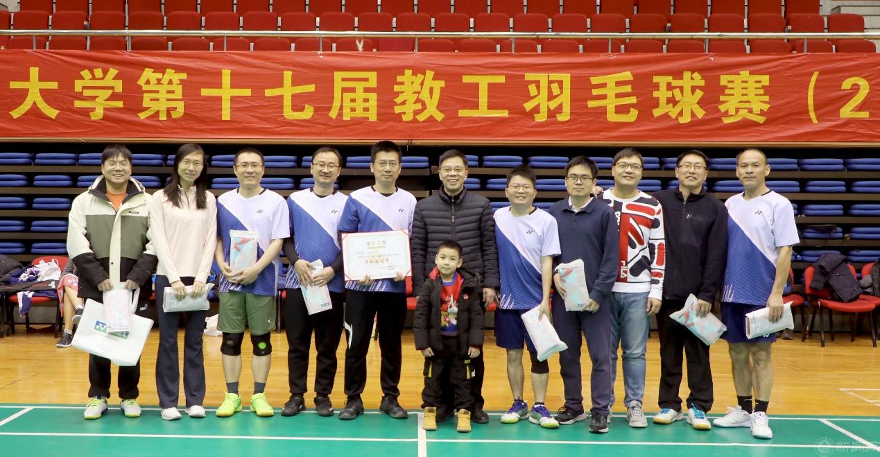 12月9日晚,学校第十七届教职工羽毛球赛在体育馆二层落下帷幕。党委常委、纪委书记段辉建,副校长卢晓斌,党委常委、组织部部长何裕等有关人员出席闭幕式并为获奖队伍颁奖。闭幕式由教工羽毛球协会会长刘泽军教授主持。