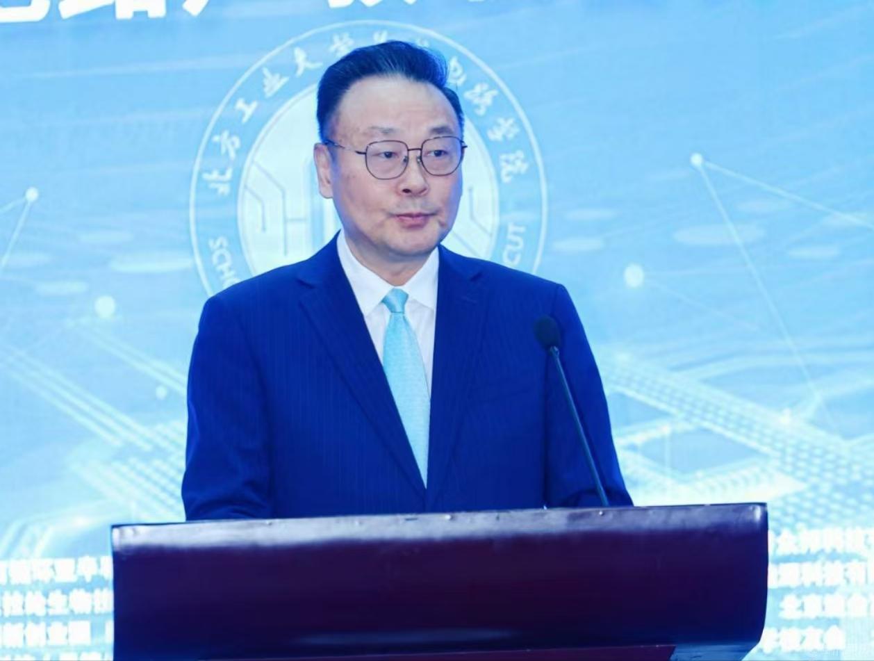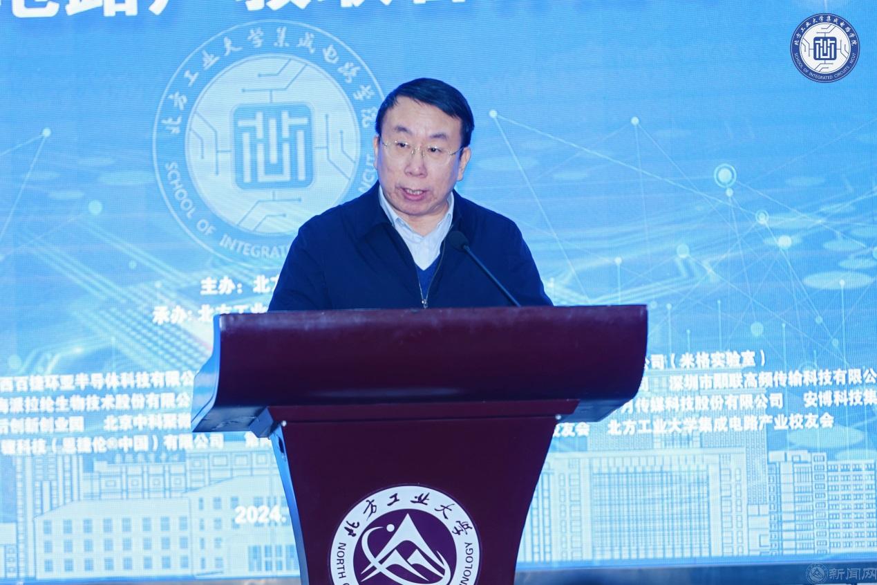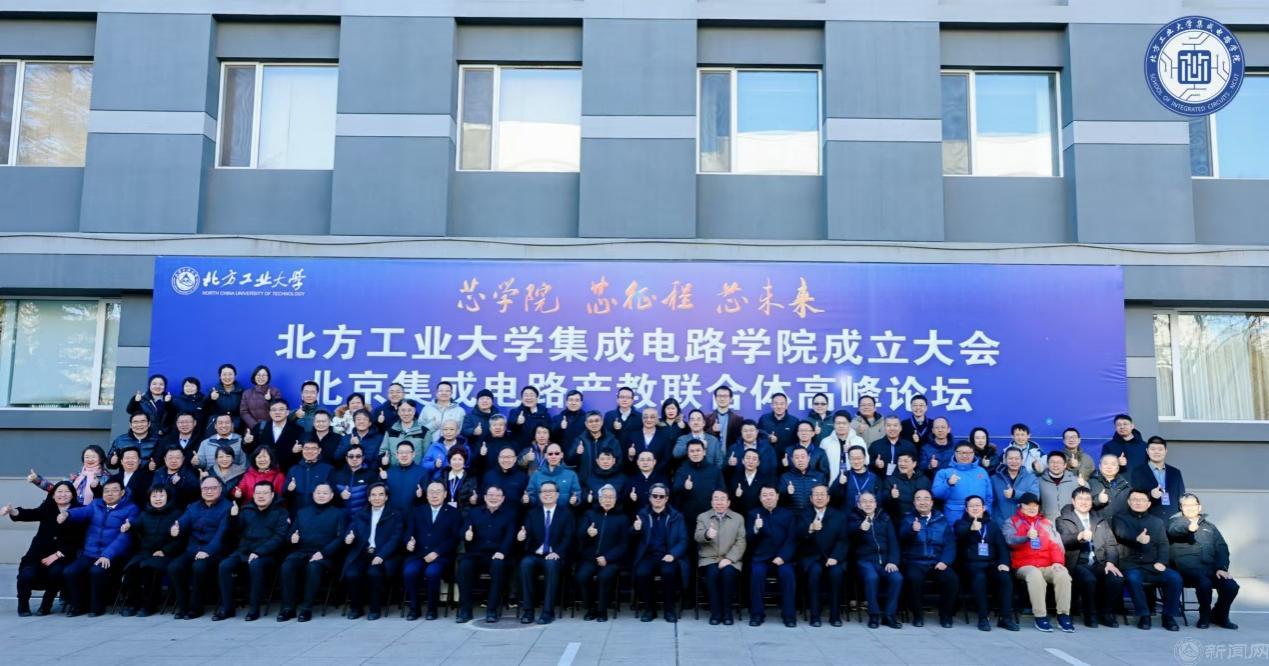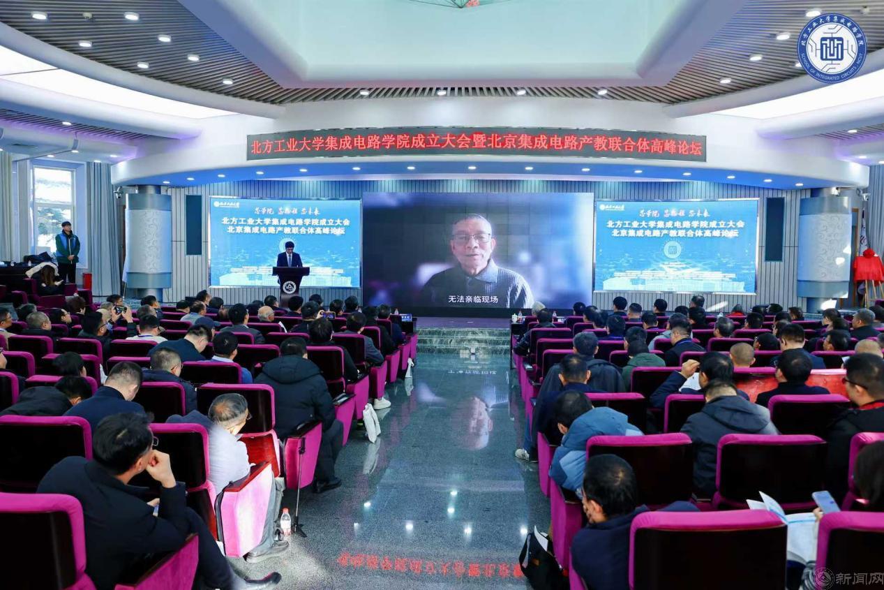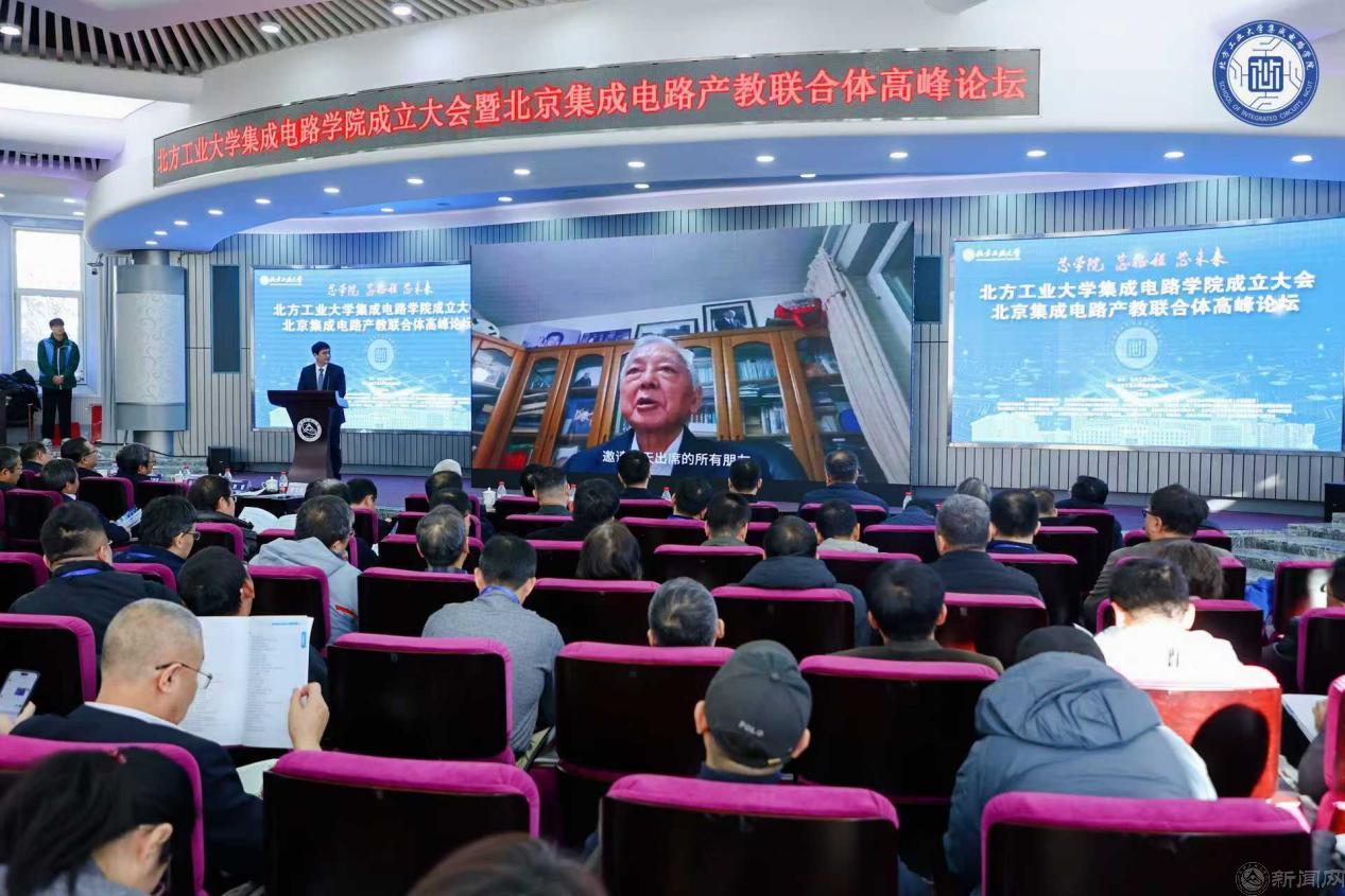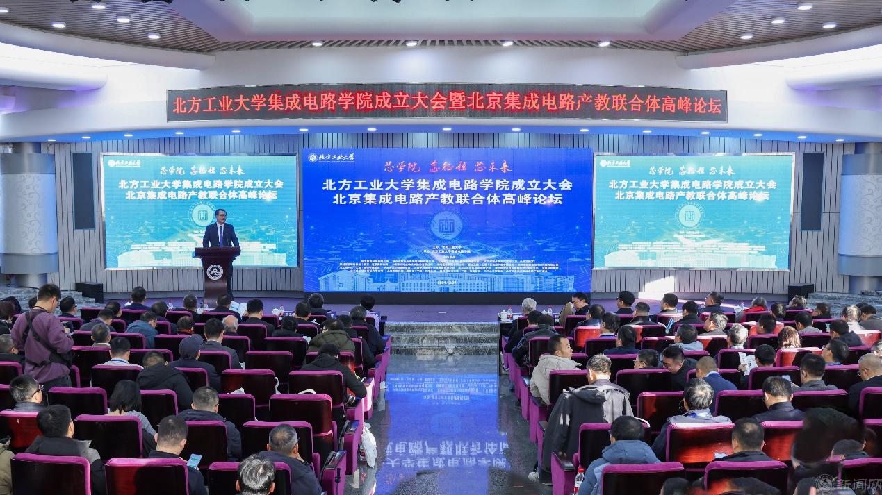 12月27日,Beat365官方网站集成电路工程学院(下简称“集成电路学院”)成立大会暨北京集成电路产教联合体高峰论坛在广学楼报告厅举行。中国科学院院士欧阳钟灿,中国科学院院士郭雷,北京市教委二级巡视员杨江林,石景山区政府党组成员、副区长李文化,门头沟区副区长陈军胜,北京市人才工作局人才开发处三级调研员董伟,中国集成电路创新联盟秘书长、欧亚科学院院士叶甜春,北京集成电路学会秘书长陈小男,北京欧美同学会副会长、北京市人大常委会委员陶庆华,Beat365官方网站党委副书记、校长张立峰,党委常委、副校长王建稳,党委常委、副校长王力,副校长卢晓斌出席。来自政府与科研机构、兄弟院校和合作企业的专家、学者和嘉宾,及学校师生代表参加。大会由Beat365官方网站党委常委、副校长李全明主持。