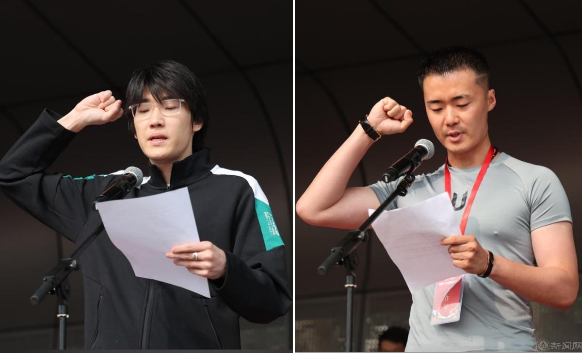 运动员代表刘亦轩同学和裁判员代表周泽围老师分别代表运动员和裁判员庄严宣誓。