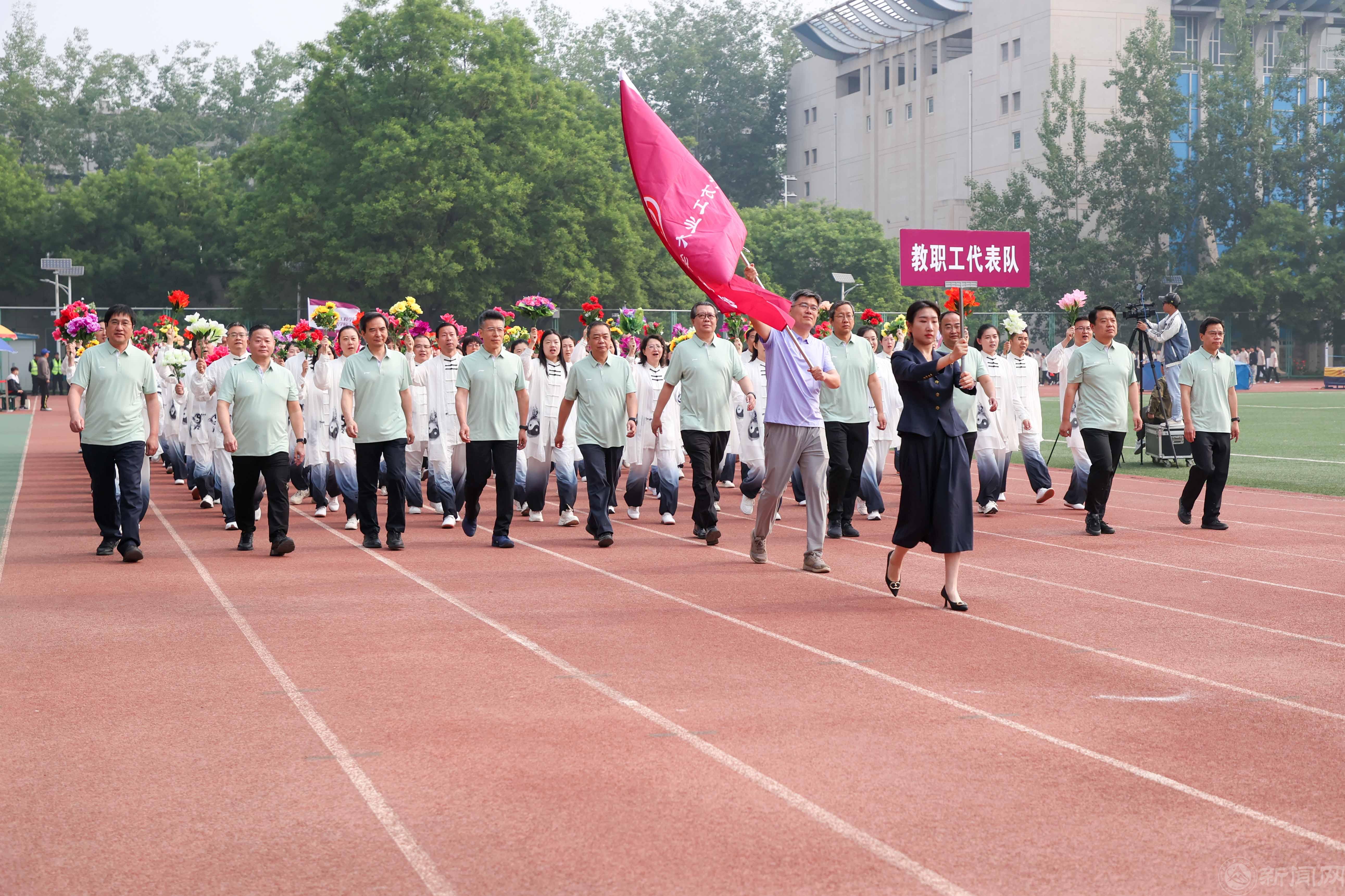 校领导刘军、张立峰、姜孔桥、史贞军、王建稳、王力、卢晓斌、陈群、李全明、段辉建等走在教职工方队的最前列。