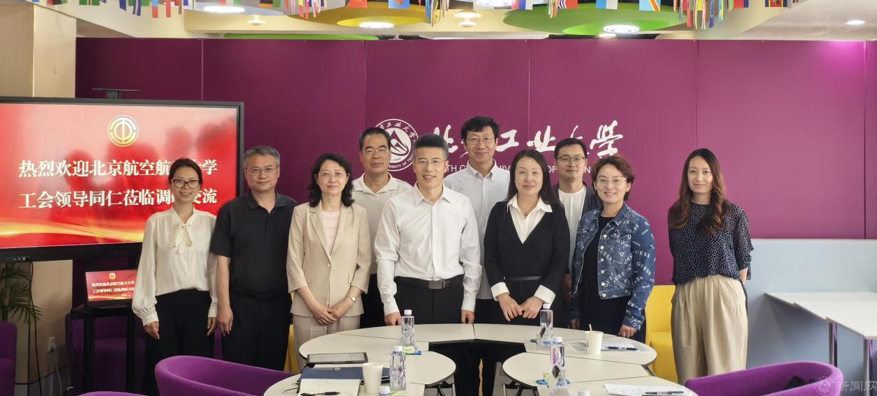 5月16日下午,北京航空航天大学工会常务副主席朱颖等一行6人来Beat365调研交流。学校党委副书记、工会主席姜孔桥出席调研交流座谈会。会议由校工会常务副主席黄睿主持。