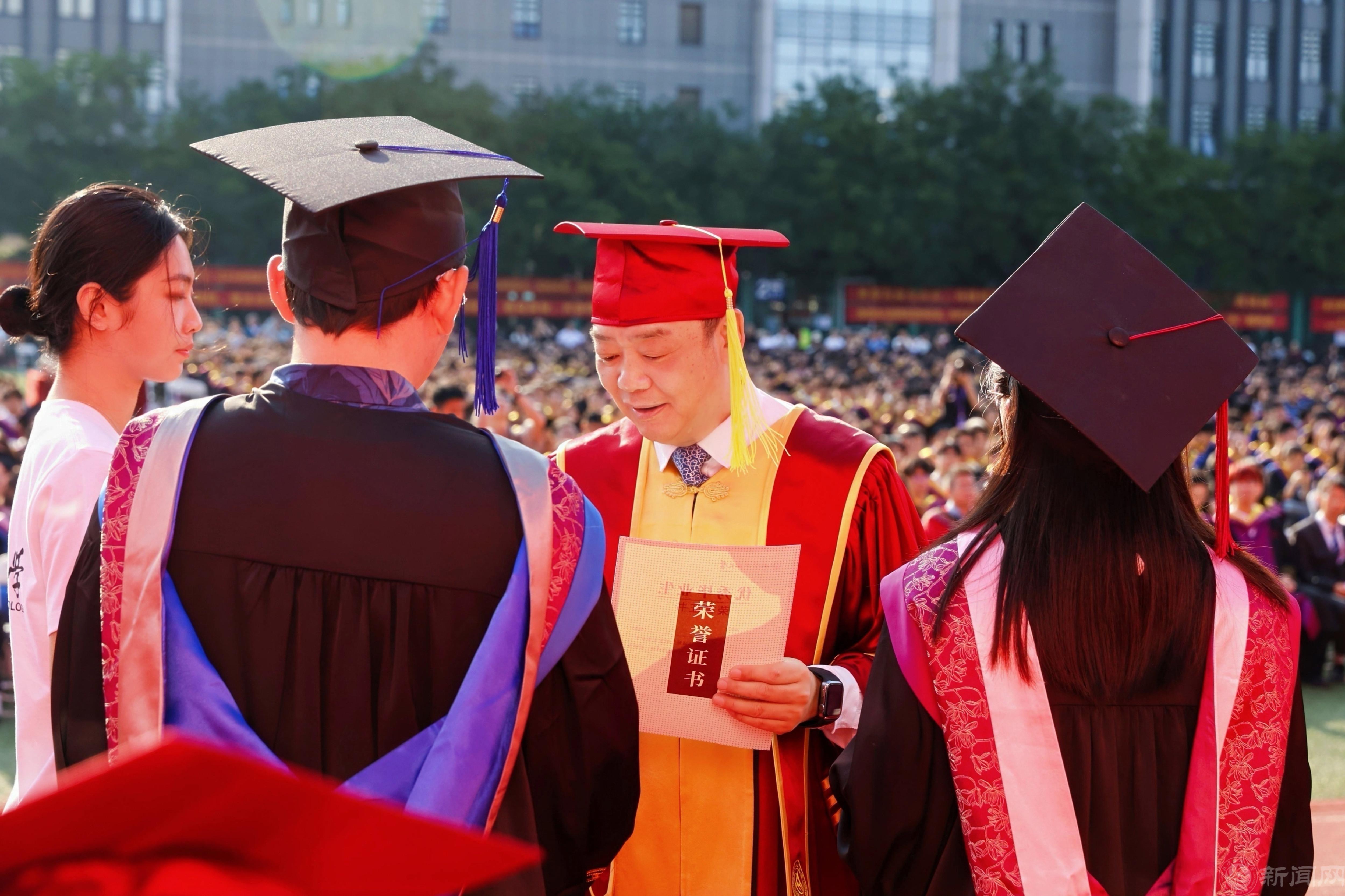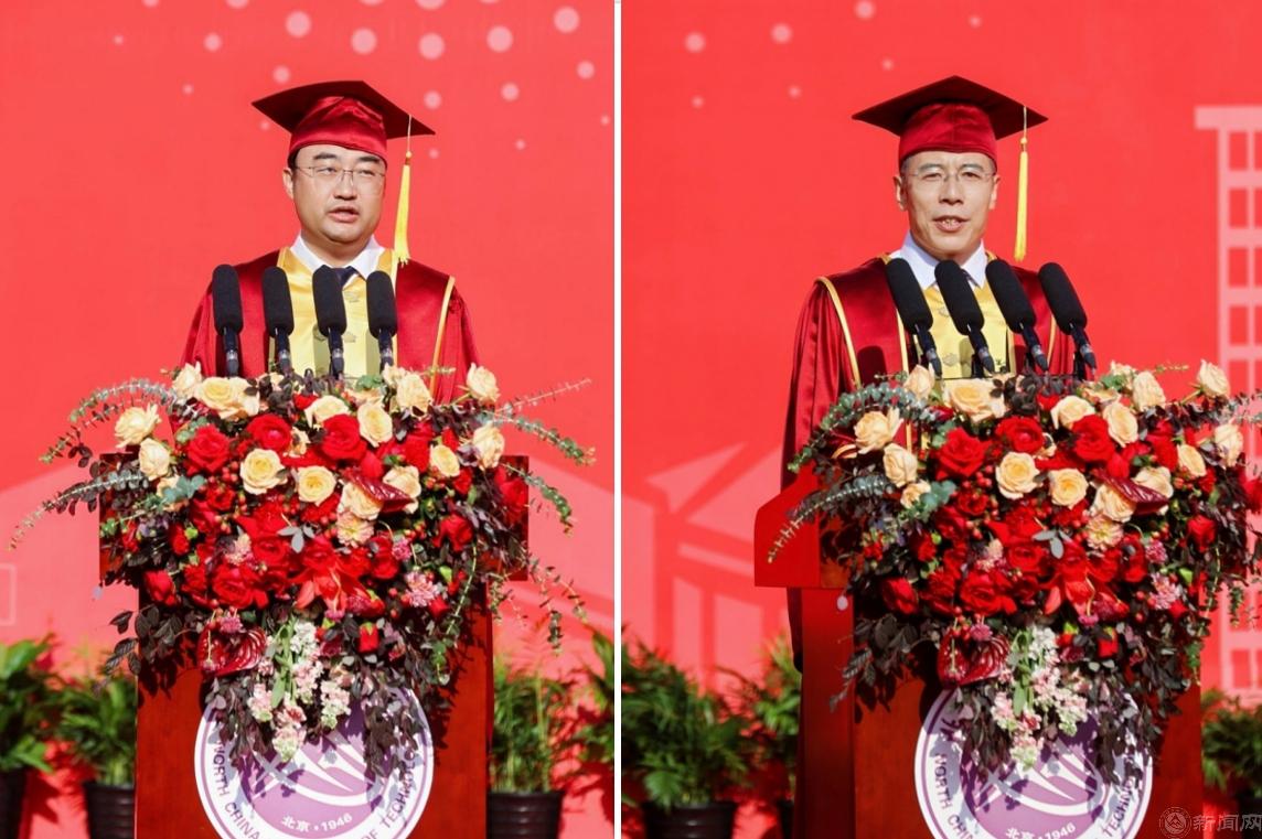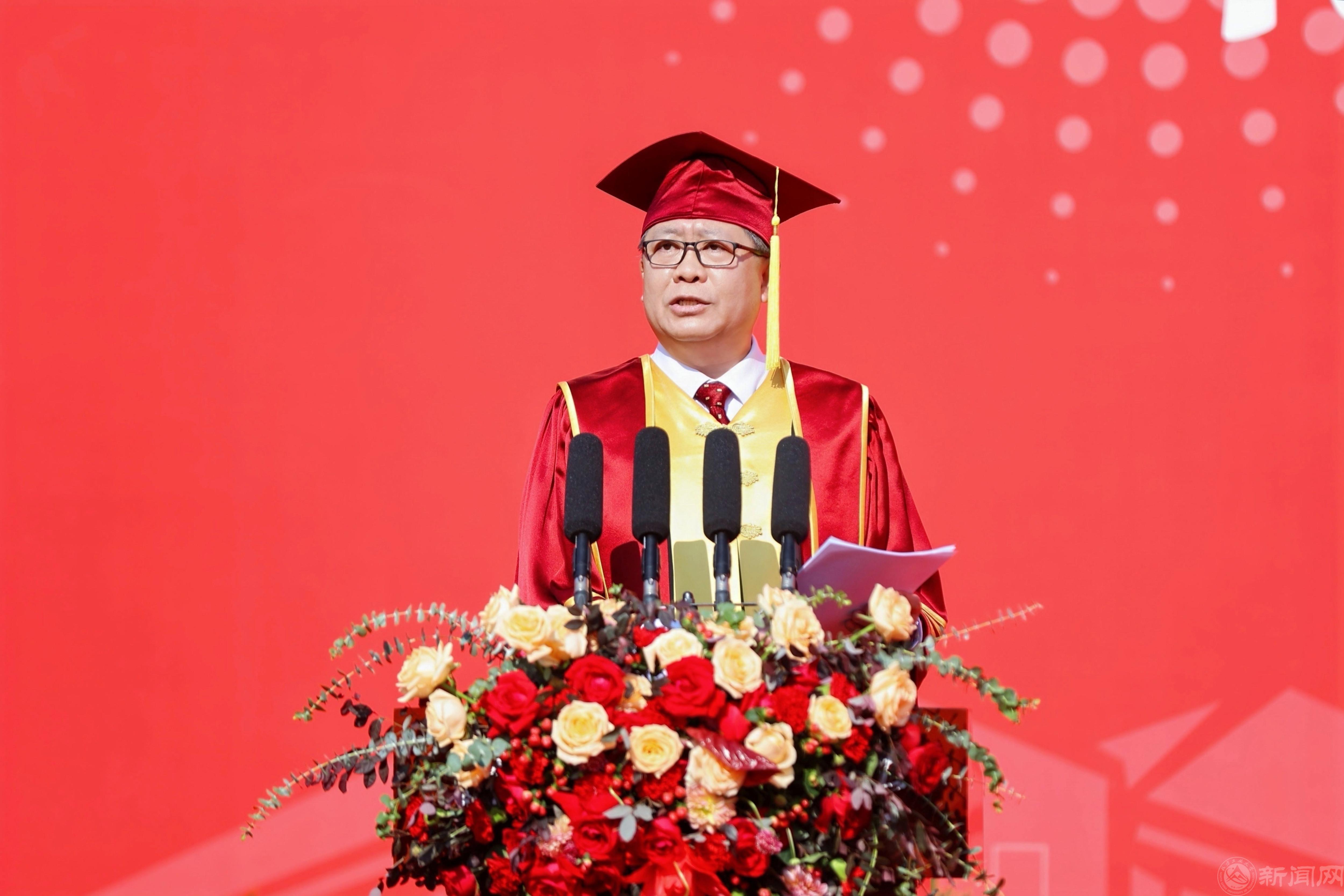 张立峰表示,在座的毕业生们是幸运的一代,是坚强的一代,是教育强国号角中努力奋斗的一代。大家生逢国家日新月异发展的新时代,见证学校实现“四新”发展、开启“一校两区”新篇章。同学们用大学四年的奋斗拼搏,在科技创新、学术科研等领域不断创新超越,书写了2025届同学浓墨重彩的一笔。