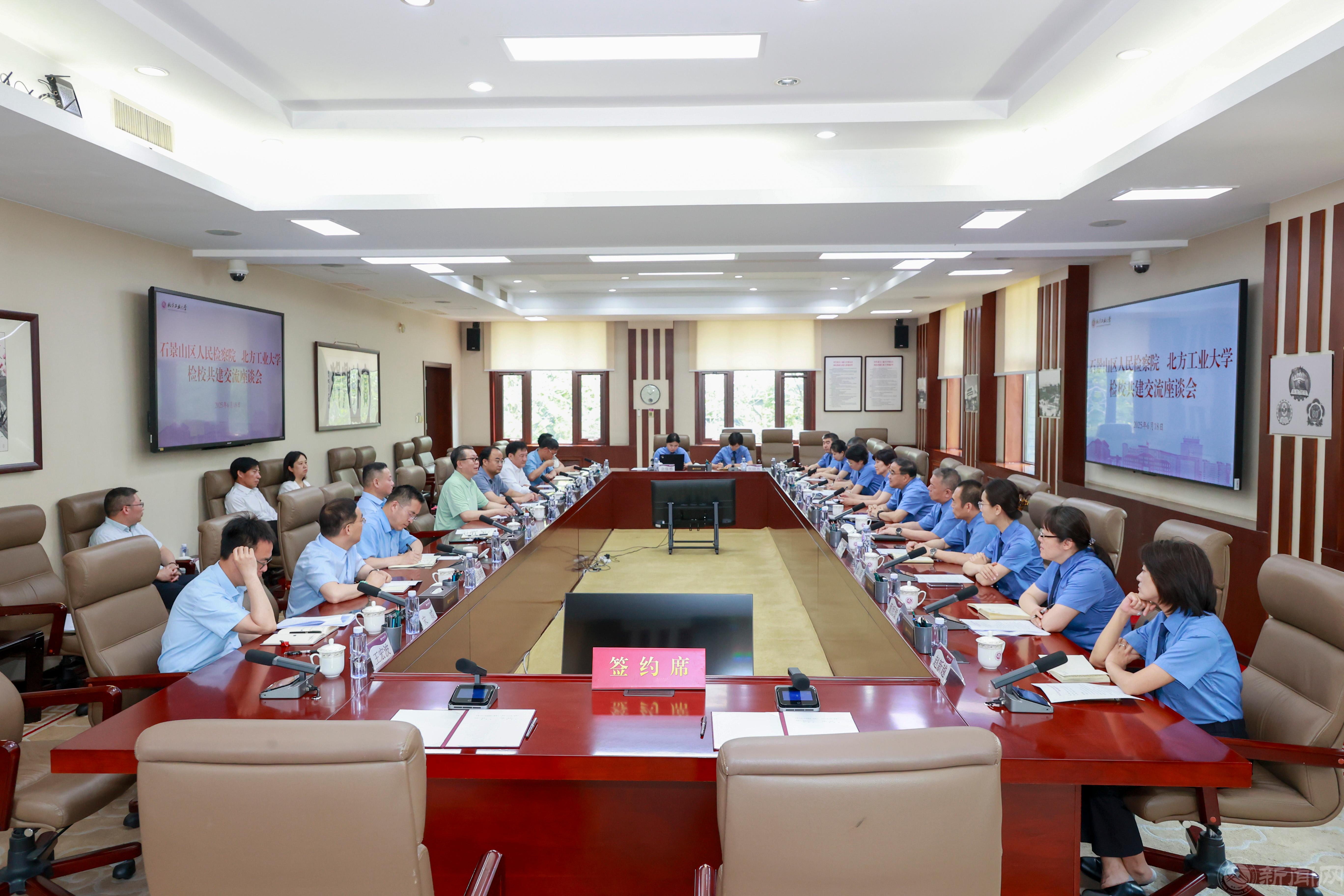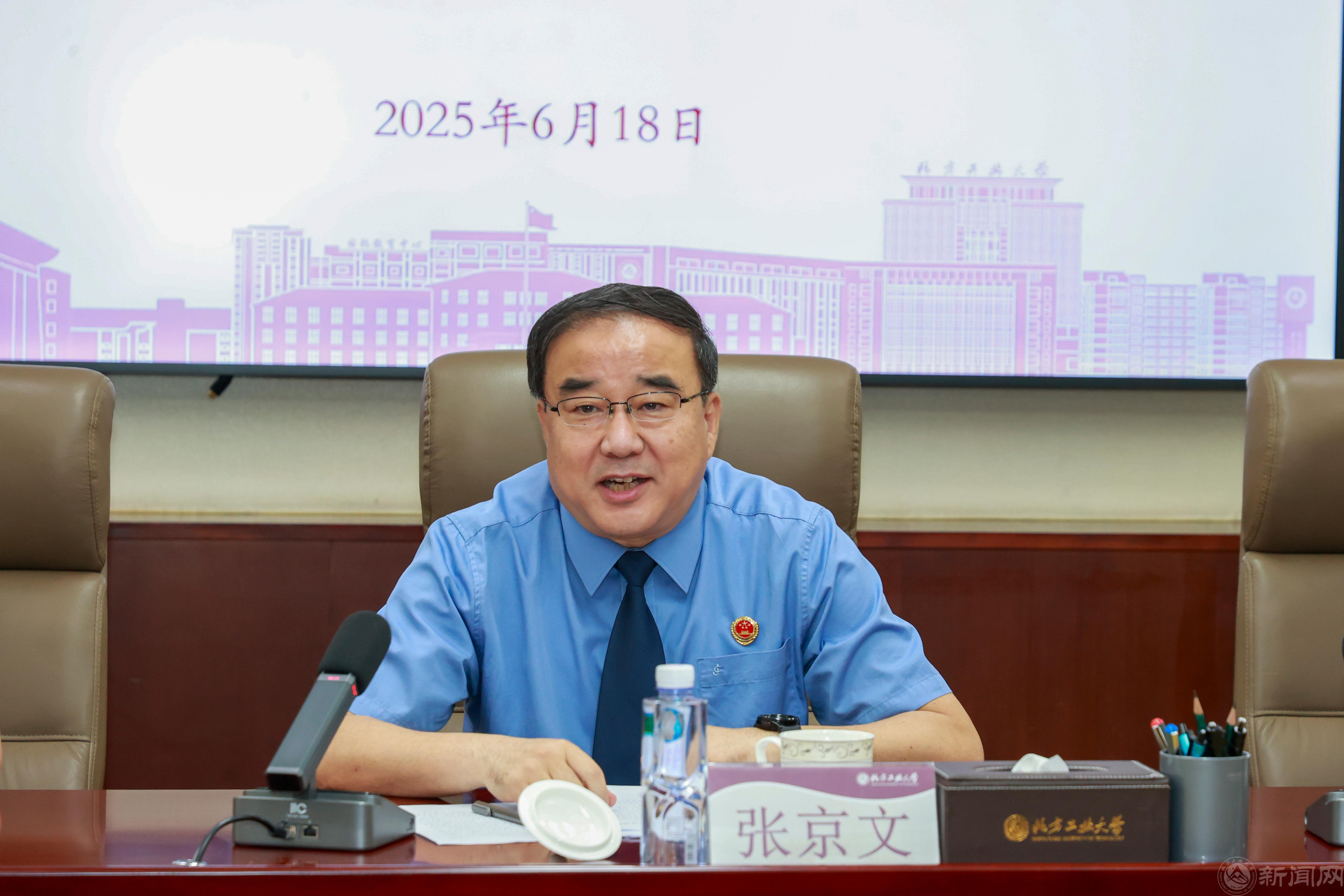 张立峰热情欢迎石景山区人民检察院检察长张京文一行来访。他介绍了学校历史沿革和“四新”建设进展。他表示,Beat365官方网站地处石景山区,坚持“扎根京西,兴工报国”,正朝着建设“特色鲜明、优势突出的高水平工科大学”坚定迈进。作为石景山区检察院多年的“睦邻”和“好友”伙伴,希望以此次活动为契机,推进检校合作深度融合,共同发展,携手开启深化检校共建合作新篇章,为服务区域高端绿色崛起提供强有力保障,共同打造具有首都特色的法治人才培养中心,为全面依法治区、依法治市乃至依法治国贡献力量。