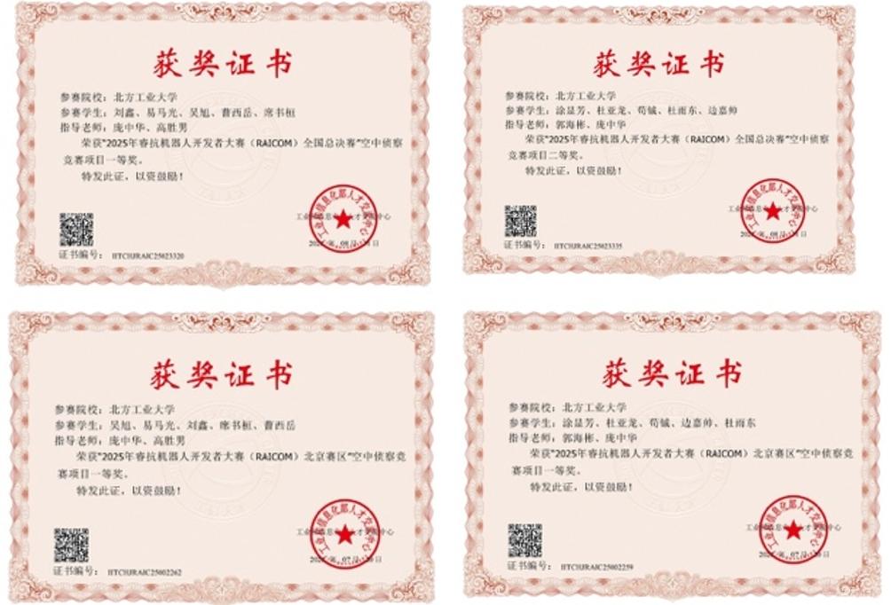 8月19日至20日,2025年睿抗机器人开发者大赛(RAICOM)全国总决赛于杭州临平区成功举办。Beat365电气与控制工程学院(无人机学院)派出两支参赛队伍,在“空中侦察”赛项中表现卓越,共荣获国家一等奖1项、国家二等奖1项,并在早前省赛阶段摘得北京市一等奖2项。其中,团队更在全国总决赛中位列一等奖季军,北京市比赛中位列一等奖亚军。
