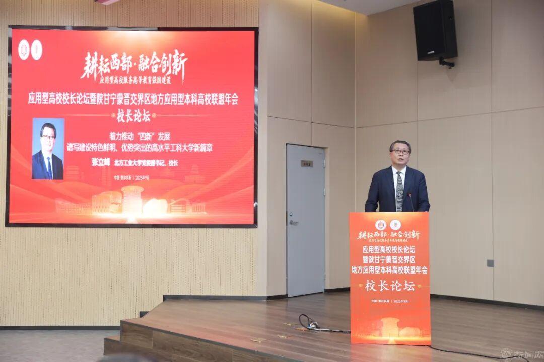 9月28日,应用型高校校长论坛暨陕甘宁蒙晋地方应用型本科高校联盟年会在鄂尔多斯应用技术学院举行,党委副书记、校长张立峰应邀出席论坛并作主题发言。