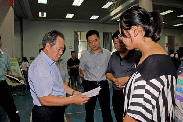 郑登文一行来到新生报到绿色通道现场,详细了解学校迎新绿色通道的工作安排,认真查看家庭经济困难新生办理绿色通道的有关资料,听取了学工部同志的工作汇报,对学校绿色通道的工作安排给予高度评价。郑登文还与现场办理绿色通道手续的新生亲切交谈,详细询问了他们的家庭情况,并鼓励他们在学校的帮助下克服困难,好好学习。