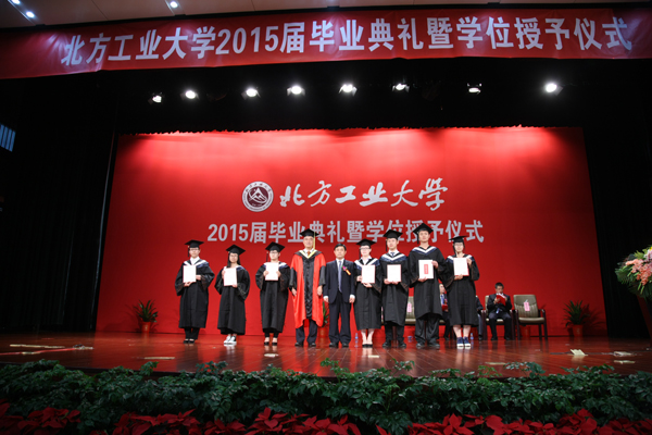 在学位授予仪式上,王晓纯校长为获得学士学位的2015届毕业生逐一拨正流苏、授予学位并合影留念。与会领导、老师、家长共同见证了这一庄严的时刻。