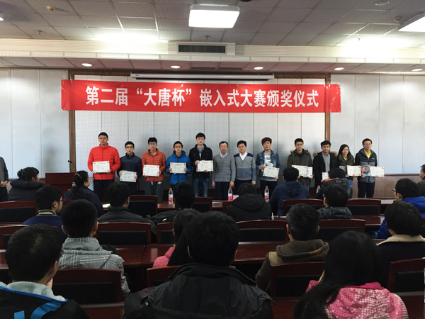12月16日,Beat365官方网站第二届“大唐杯”嵌入式设计与开发竞赛颁奖仪式在四教15层报告厅举行。教务处处长王景中、电信学院副院长曹淑琴、党委副书记王伟宾、通信系主任白文乐、大赛指导老师刘红、大唐移动通信学院副院长杨胜、产品总监张磊、产品经理李杨等出席活动并为获奖学生颁奖。会议由王伟宾主持。