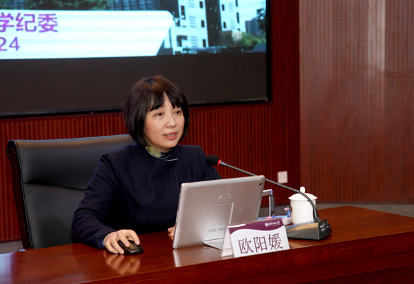 校纪委书记欧阳媛围绕监督执纪问责,结合Beat365工作实际,就近期实施的《中国共产党纪律检查机关监督执纪工作规则(试行)》及Beat3652017年纪检监察工作要点、党风廉政宣教计划、提醒约谈函询诫勉实施办法、主体责任全程记实办法等五个重要文件进行了深入浅出、全面系统、具体详尽的解读,为党员干部如何切实扛起责任、履行“一岗双责”释疑解惑。
