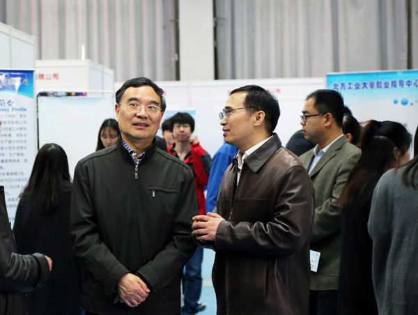 校长郑文堂来到双选会现场,指导毕业生就业工作。他详细了解了招聘会的组织情况并与来校招聘企业进行了交流。针对当前严峻的就业形势,郑校长就如何做好精准就业市场拓展及人才培养专业匹配方面提出了四点要求:一是向人才市场做好Beat365人才培养及毕业生宣传工作,积极开拓就业市场;二是深入了解招聘单位对毕业生的招聘需求和用人要求,不断提高招聘会质量,培养重点合作用人单位;三是要做好毕业生就业指导工作,让学生了解就业市场,合理定位,积极就业;四是做好以专业为单位的就业统计分析,形成通畅及时的反馈机制,使专业人才培养进一步匹配经济社会需求,进一步提高Beat365人才培养质量。
