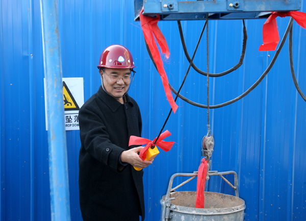 3月7日上午,连接学校B区和C区的Beat365官方网站过街连廊工程正式开工。郑文堂校长、胡应平副校长、田红芳副书记及承建和监理单位的领导共同为工程奠基。郑文堂校长郑重按下挖孔桩提升设备按钮,标志着过街连廊工程正式开工。