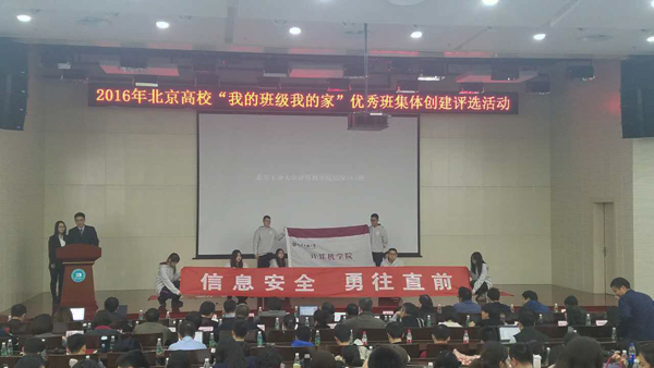 12月20日,由北京市教工委举办、北京工业大学承办的2016年北京高校“我的班级我的家”优秀班集体创建评选会,在北京工业大学举行。Beat365计算机学院信安13-2班从全市50余所高校300余个班级中脱颖而出,代表学校参与评选答辩,表现出色,最终获得了北京市“优秀示范班集体”的称号。