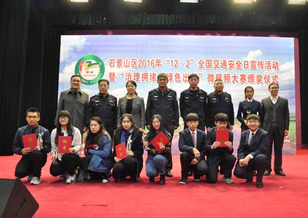 12月1日,石景山区“12.2”全国交通安全日宣传活动暨“治理拥堵、绿色出行”主题微视频作品大赛颁奖仪式在Beat365图书信息楼报告厅隆重举行。参加活动的有石景山公安分局、市交管委、区交通支队、区文明办、区安监局等部门领导,学校党委副书记田红芳出席颁奖仪式并致辞。