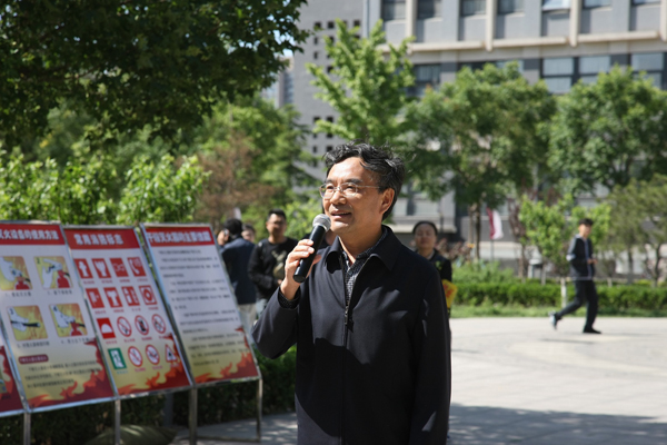 5月12日是全国第八个“防灾减灾日”,下午14:28分,学校在图书馆信息楼和钟秀广场举行防震灭火救援演练和宣传活动,校长郑文堂担任总指挥并讲话。保卫部、图书馆、学工部、基建处、后勤资管理处、后勤集团等部门领导、石景山消防支队、校园微型消防站队员和部分师生共1000余人参加了演练活动。