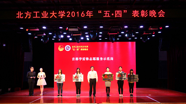 校领导为获得2015-2016学年度优秀团员、优秀团干部、优秀团支部的集体和个人颁发荣誉证书,向获得“中国大学生百炼之星”标兵宿舍、首都学雷锋志愿服务示范岗的集体颁发奖牌。