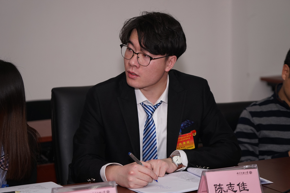 来自电子信息工程学院的陈志佳,是学校第十四届学生委员会委员、学院第三届学生会主席,他曾经作为学生代表参加过两次学生代表大会。在此次学校第八次党员代表大会上,陈志佳又有了另一个新的身份:最年轻的党代表。