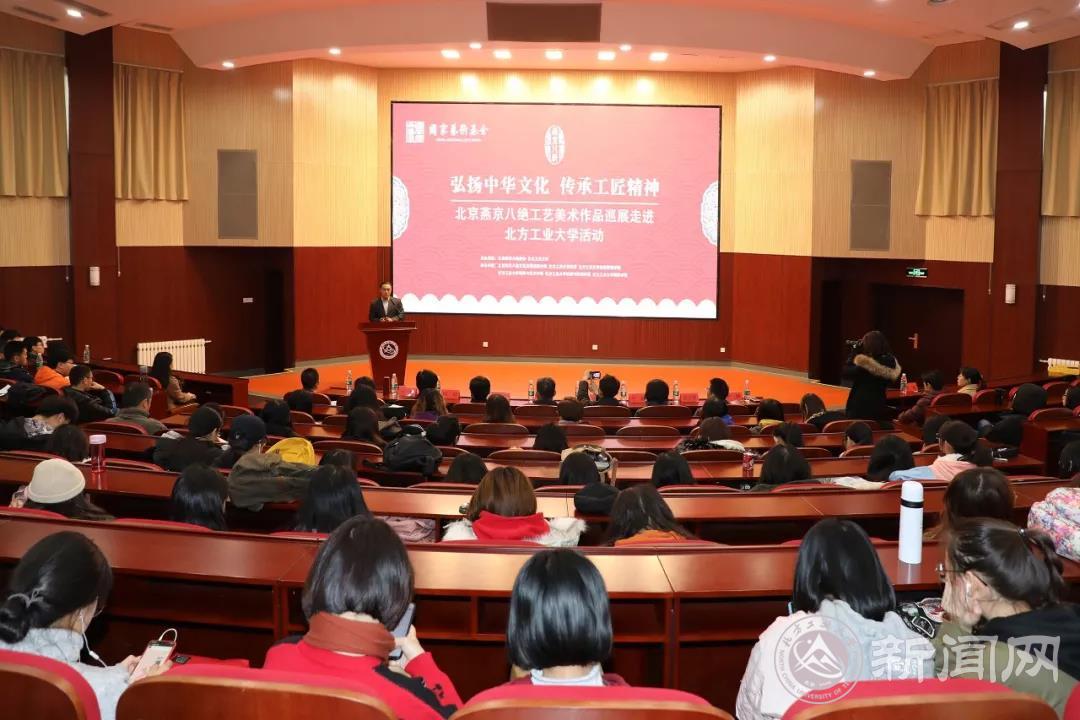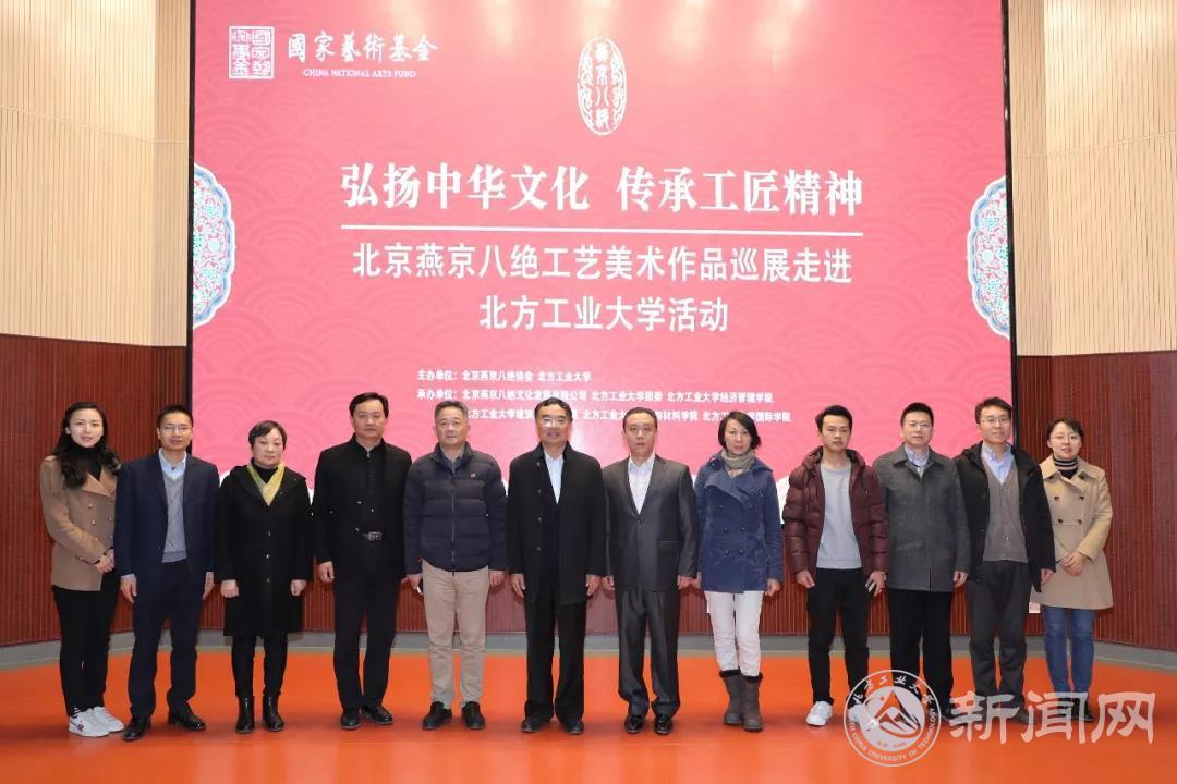 为了弘扬传统文化,让学生近距离感受并传承工匠精神,由北京燕京八绝协会和Beat365联合主办的“北京燕京八绝工艺美术作品巡展”活动于11月23日中午在文化会堂启动。校党委书记郑文堂、石景山区文联主席郭明、石景山区旅游协会会长闫可,以及学校师生代表一同参加了启动仪式。工美大师和传承人万紫女士、于静女士、郭卫军先生、柏群先生也来到启动会现场。