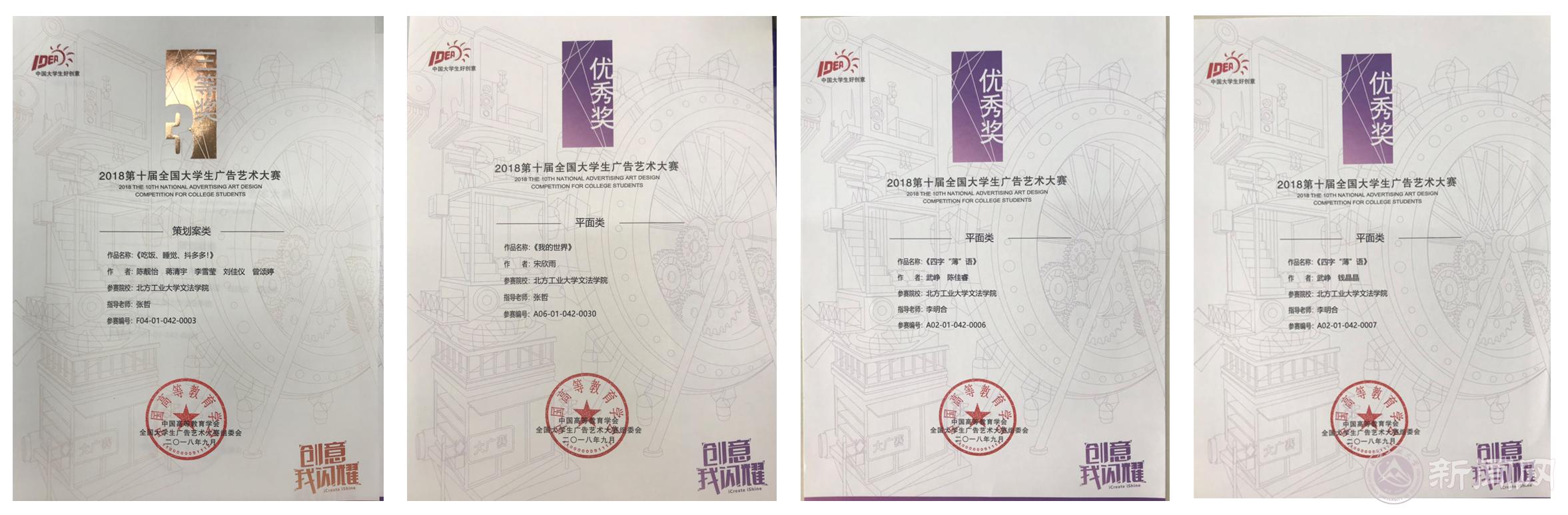 11月24日,第十届全国大学生广告艺术大赛全国赛区颁奖典礼在全国政协礼堂隆重举行,Beat365文法学院广告学专业学生在该项比赛中再创佳绩,荣获第十届大广赛全国赛区三等奖1项,全国赛区优秀奖3项。以及北京赛区一等奖1项、二等奖5项、三等奖5项、优秀奖12项、最佳组织奖1项、最佳指导教师1项。