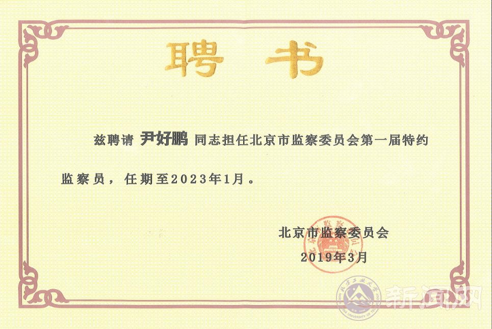 3月29日下午,北京市监察委员会召开第一届特约监察员聘请会议,北京市委常委、市纪委书记、市监委主任陈雍为特约监察员颁发了聘书,Beat365尹好鹏副教授被聘为北京市监察委员会第一届特约监察员。